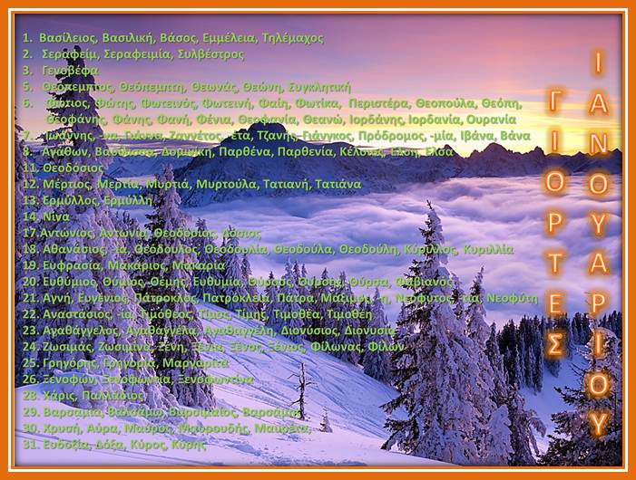 ΓΙΟΡΤΕΣ ΙΑΝΟΥΑΡΙΟΥ