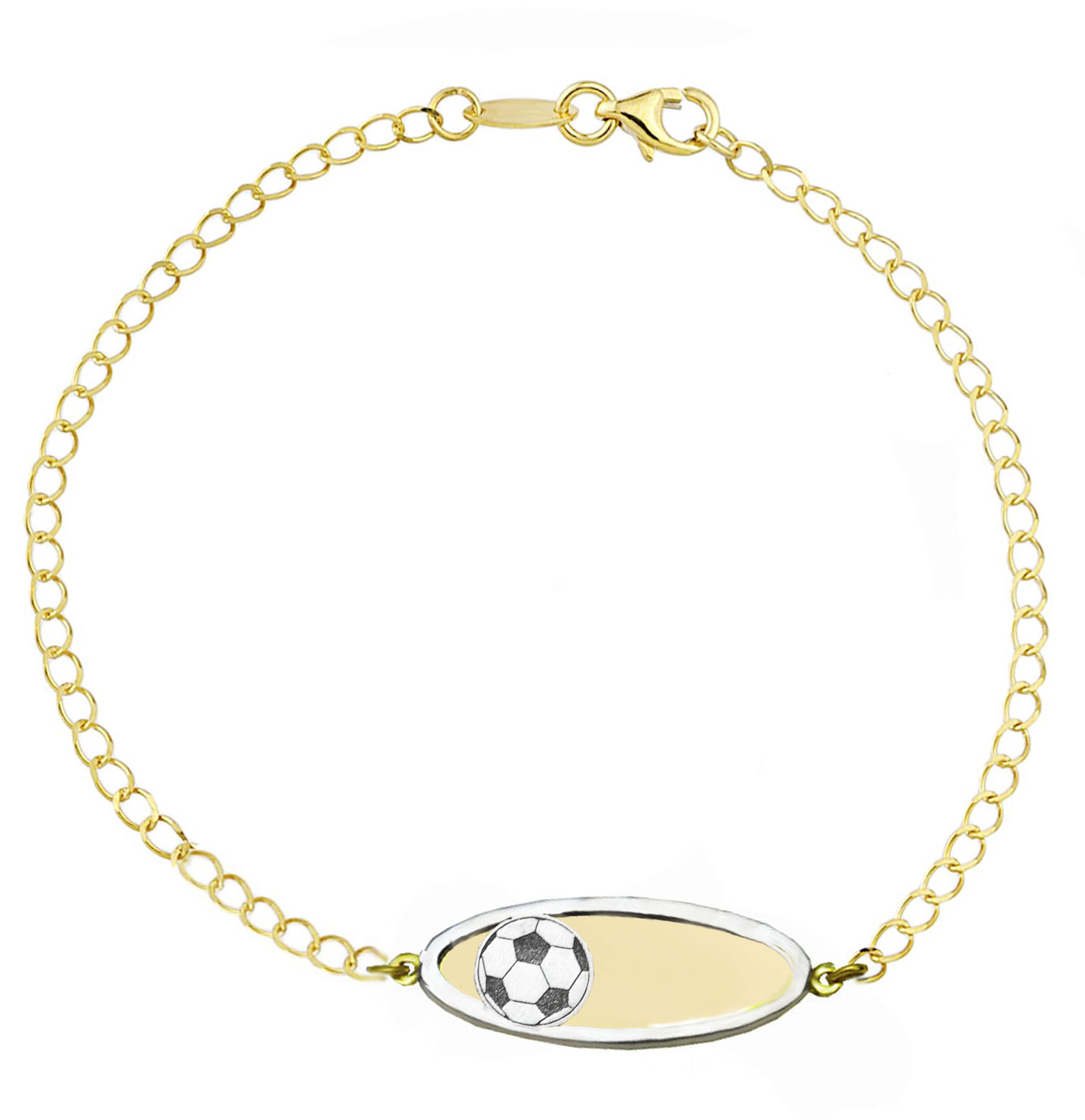 Χρυσή παιδική ταυτότητα με μπάλα. Στην πλακέτα μπορείτε να μας ζητήσετε να χαράξουμε όνομα.