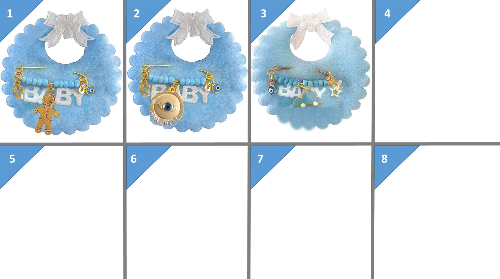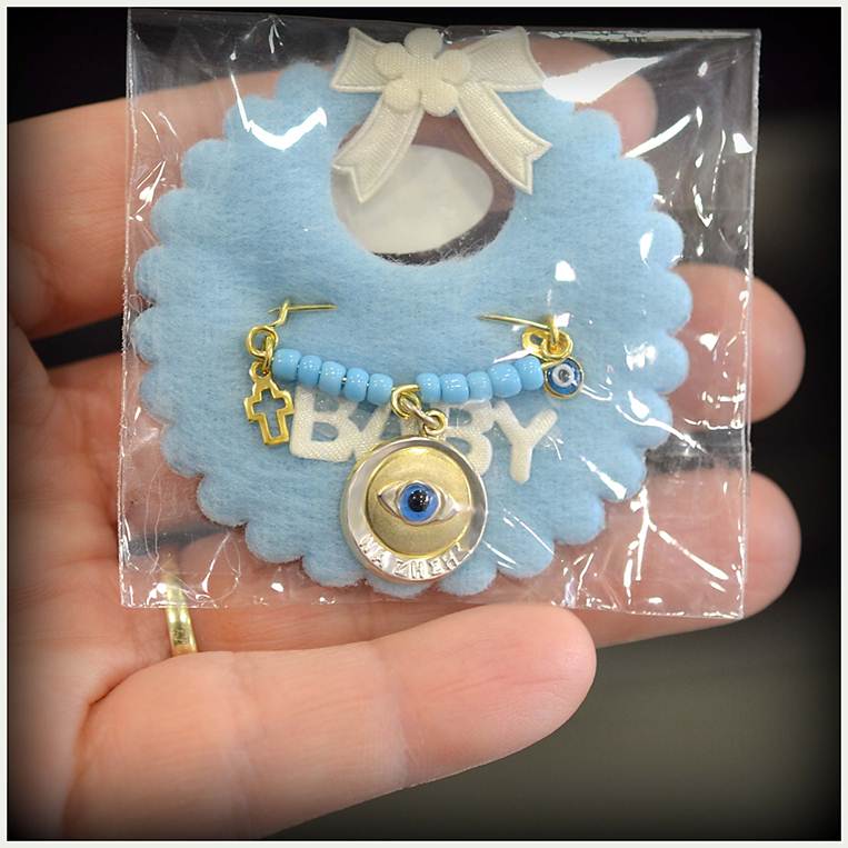 Η διακόσμηση της παραμάνας στα μικρά κρεμαστά στοιχεία (σταυρουδάκια, ματάκια κλπ – όχι το κεντρικό μεφάλο μοτίφ) μπορεί να διαφέρουν γιατί είναι χειροποίητες συνθέσεις.