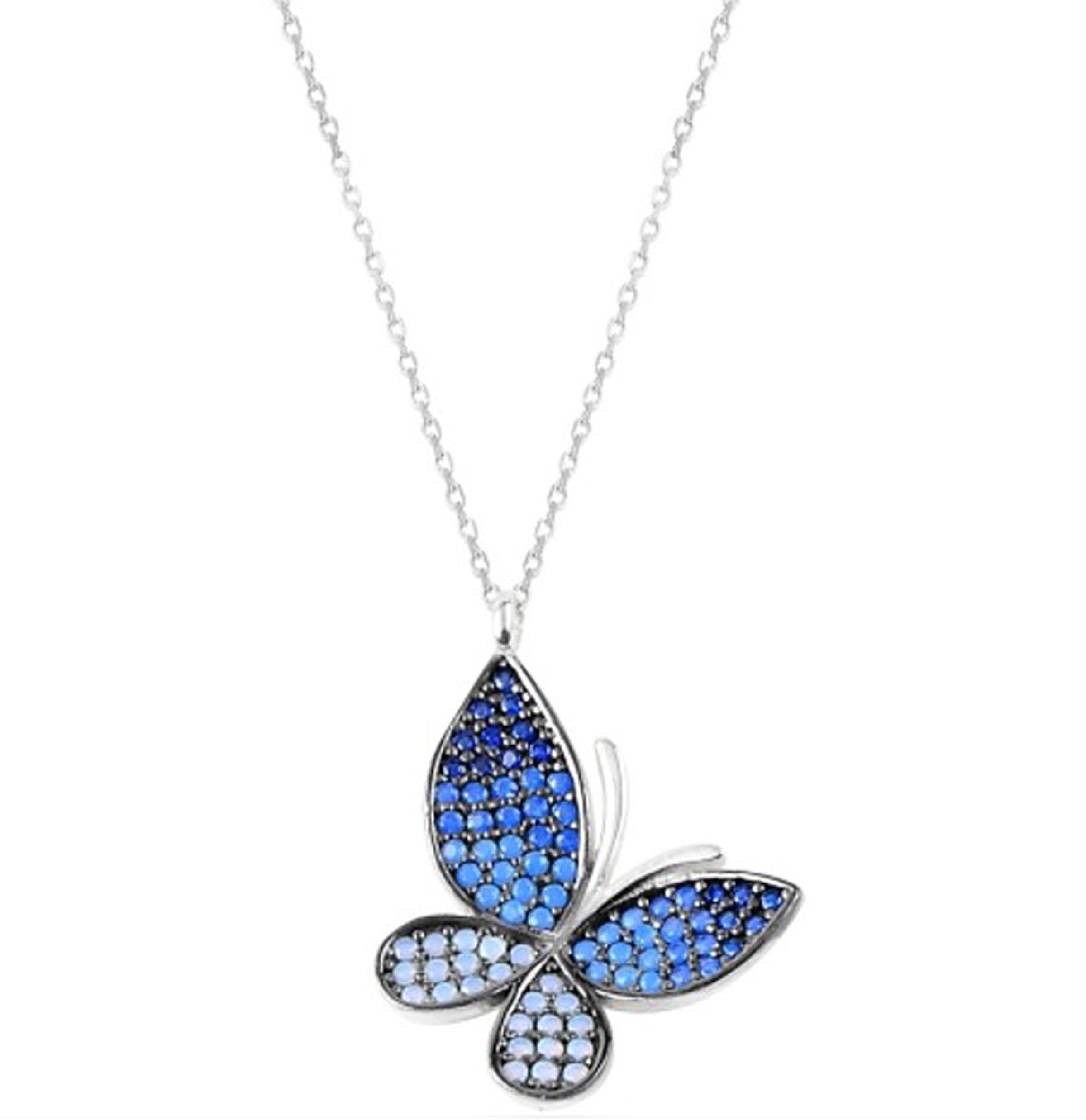 Ασημένιο κολιέ 925° με μοτίφ πεταλούδα με πέτρες.