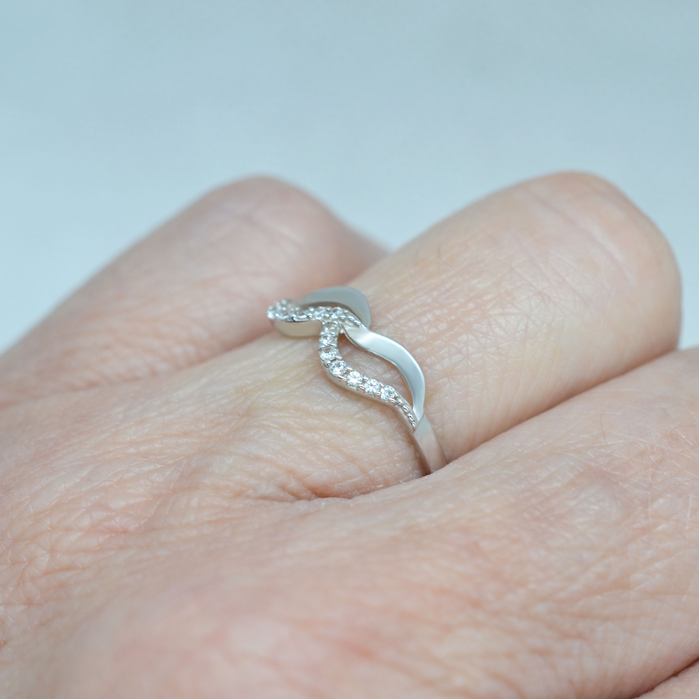 Λευκόχρυσο μοντέρνο δαχτυλίδι με λευκές ζιργκόν πέτρες.