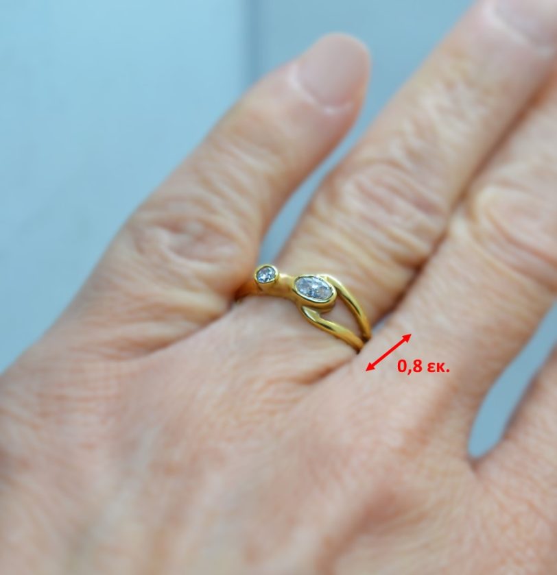 Χρυσό δαχτυλίδι με δυο λευκές πέτρες.