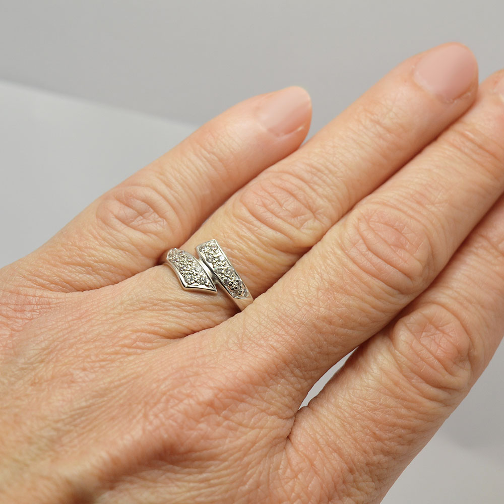Λευκόχρυσο δαχτυλίδι με λευκές ζιργκόν πέτρες.