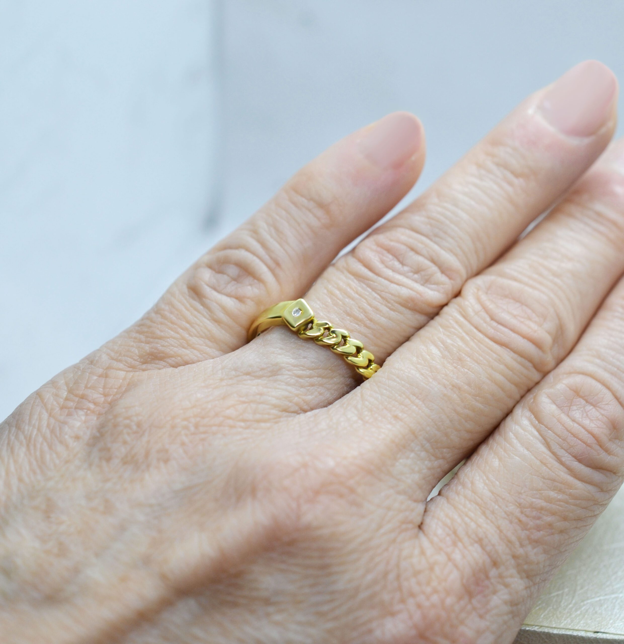 Χρυσό δαχτυλίδι, σχέδιο αλυσίδα με ζιργκόν πέτρα.