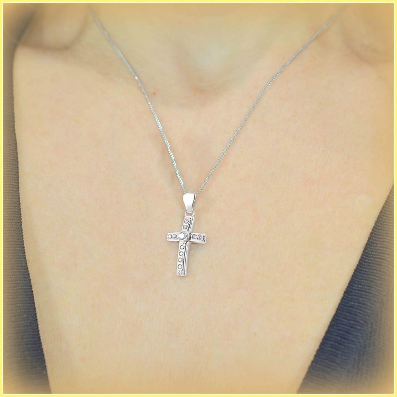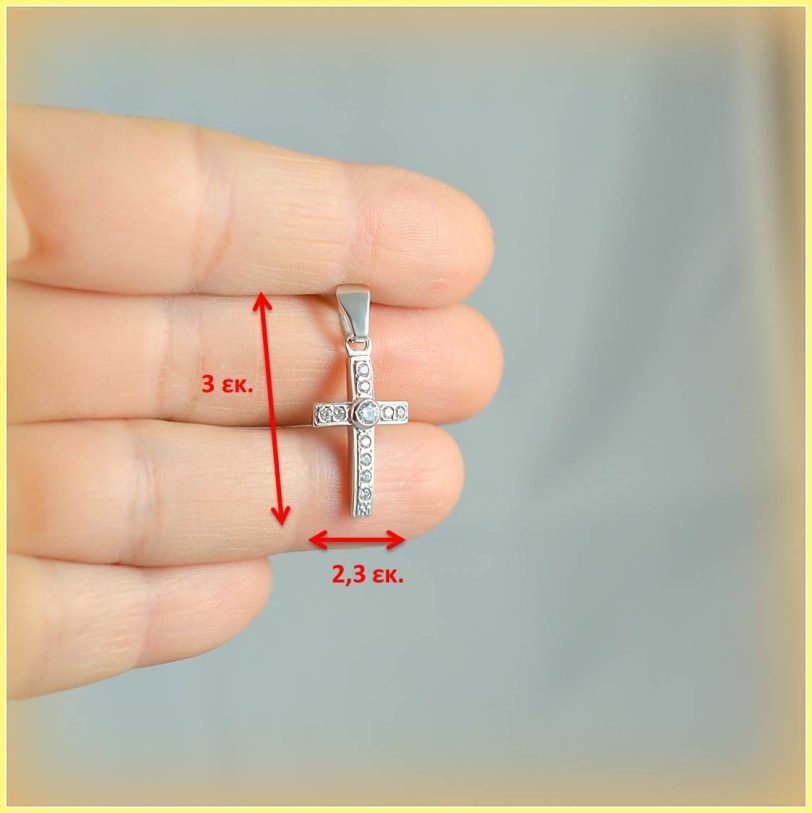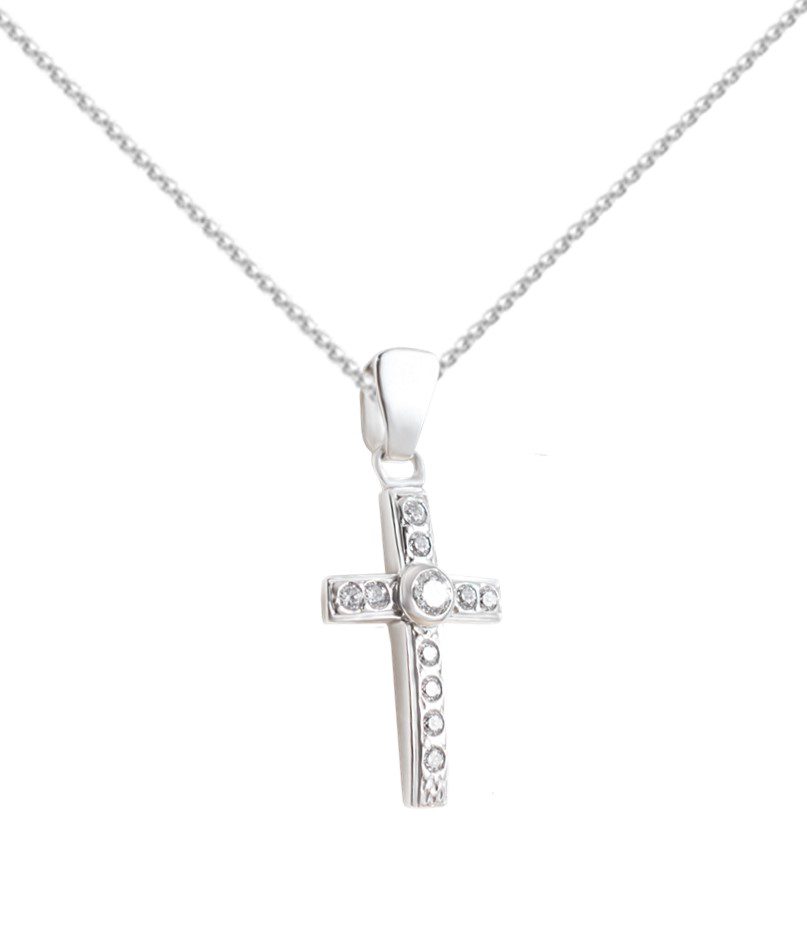 Λευκόχρυσος μικρός σταυρός με λευκά ζιργκόν για να φοράτε καθημερινά.