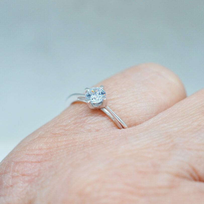Λευκόχρυσο μονόπετρο δαχτυλίδι με ζιργκόν πέτρα.