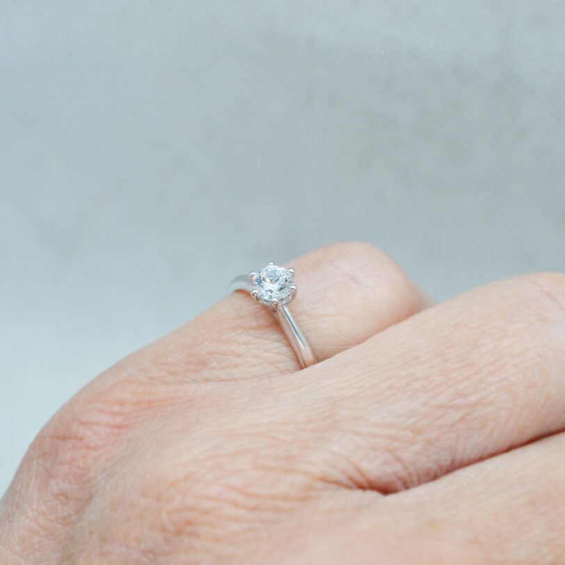 Λευκόχρυσο μονόπετρο δαχτυλίδι με ζιργκόν πέτρα.