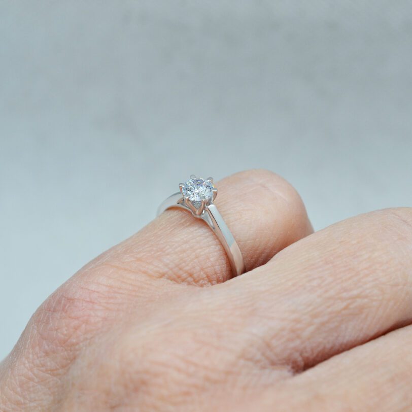 Λευκόχρυσο μονόπετρο δαχτυλίδι με ζιργκόν πέτρα.
