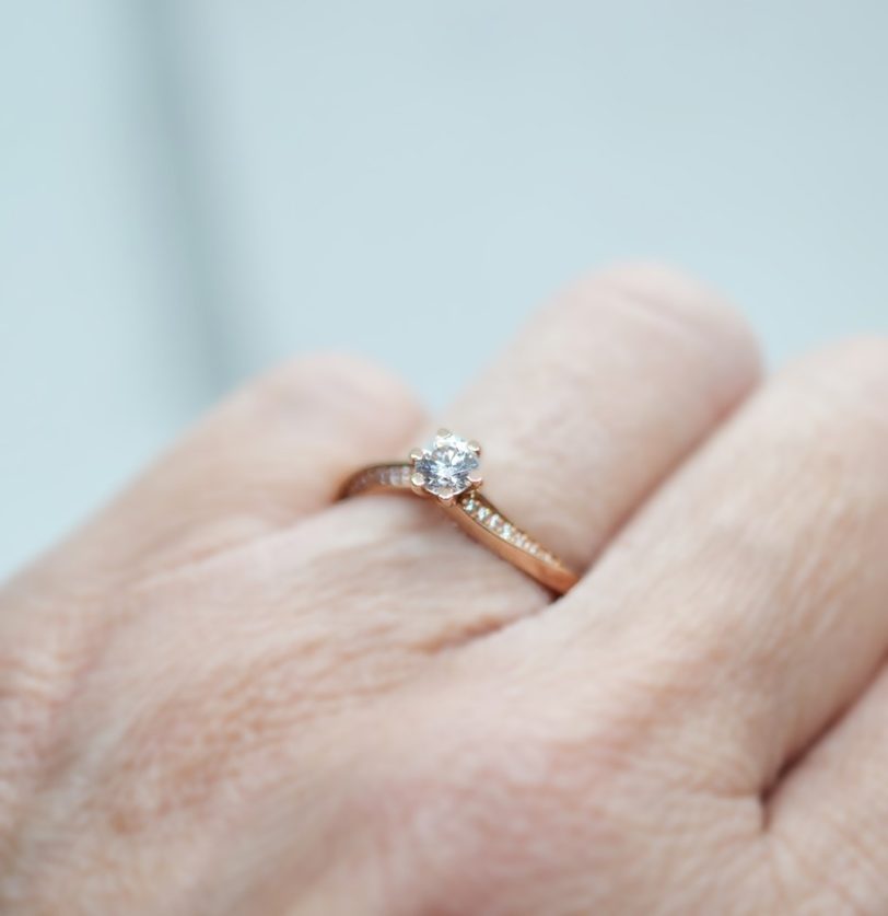 Μοντέρνο ροζ χρυσό μονόπετρο με ζιργκόν πέτρες.