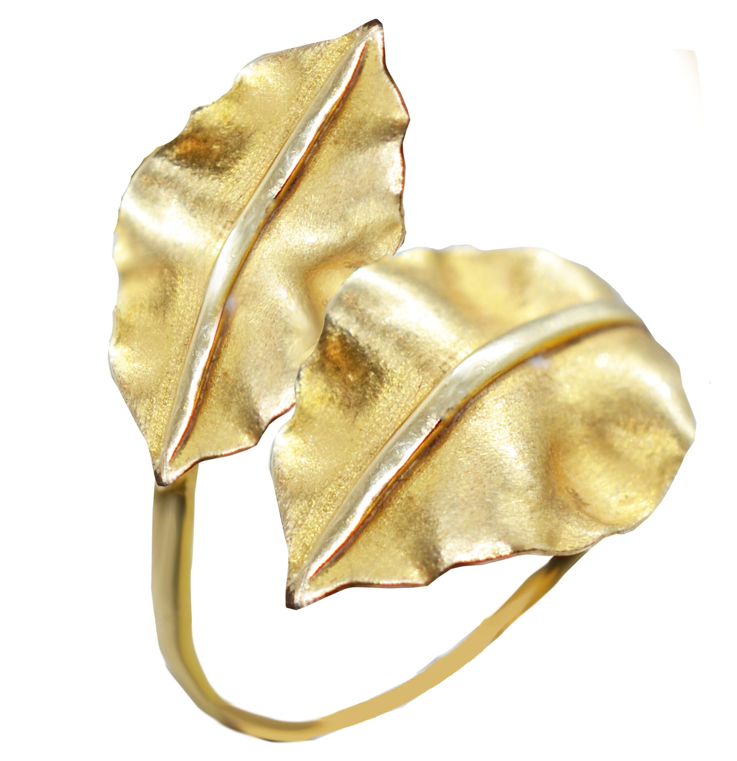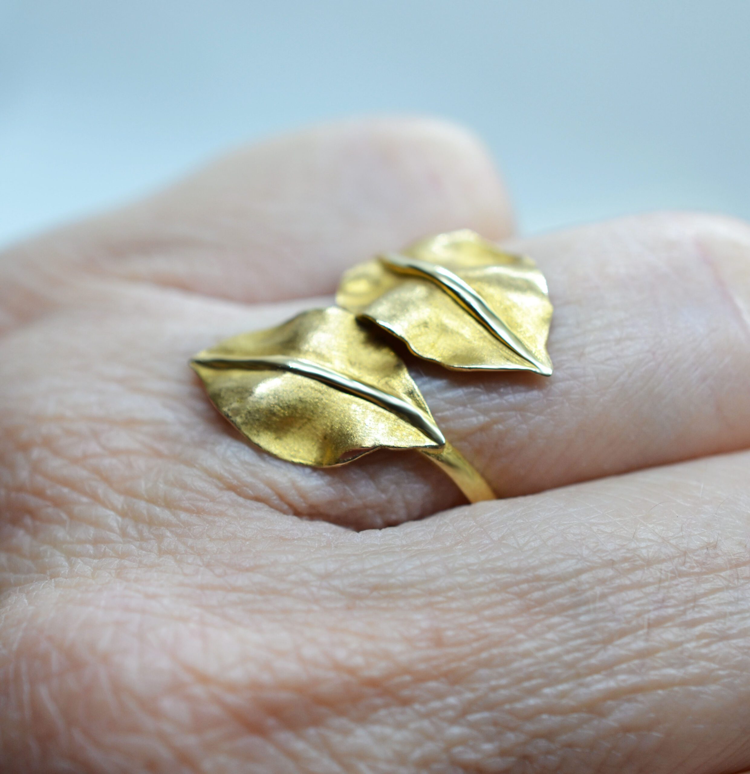 Χρυσό χειροποίητο δαχτυλίδι σε σχέδιο φυλλαράκια.