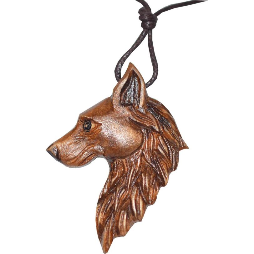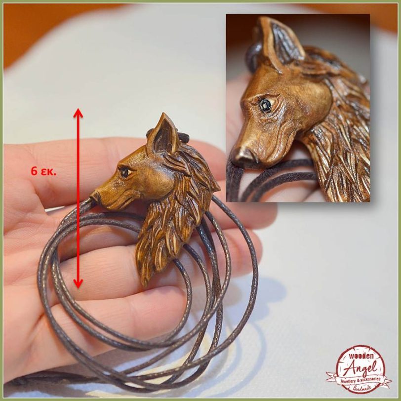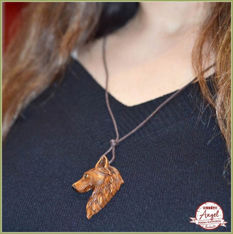 Ένα χειροποίητο ξυλόγλυπτο κολιέ με προτομή ενός αγέρωχου λύκου με λεπτομέρεις υψηλής γλυπτικής που θα καθηλώσουν τα βλέμματα. Ένα ιδιαίτερο και γοητευτικό κόσμημα που θα ξεχωρίσει με την λεπτομέρεια του σχεδίου του.