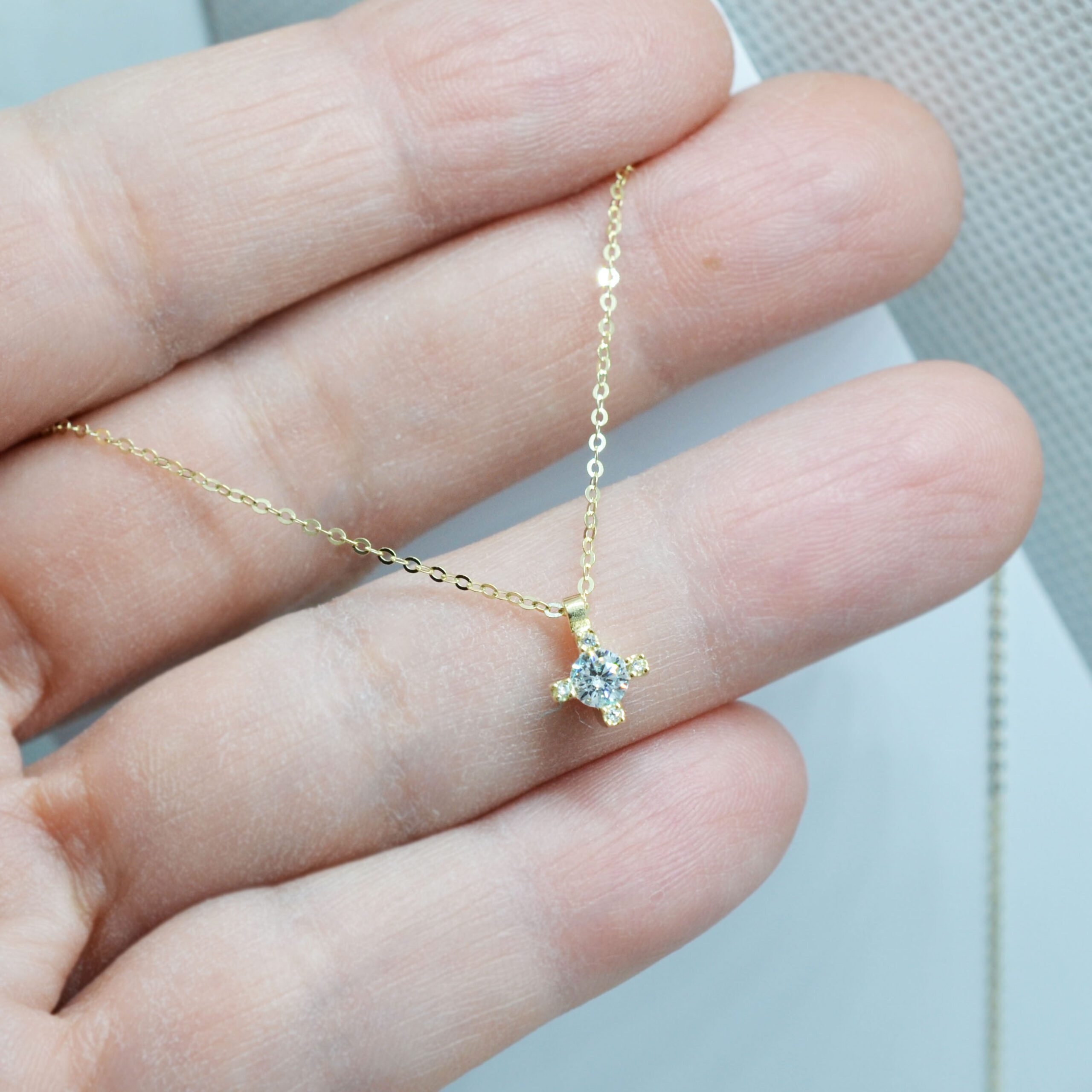 Χρυσό κολιέ με μικρό σταυρό διακοσμημένο με λευκές πέτρες.