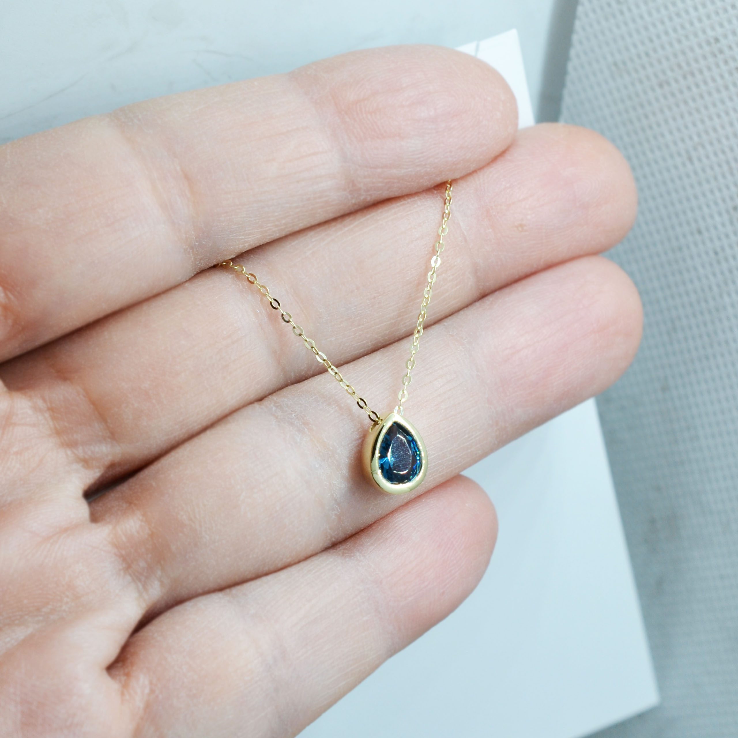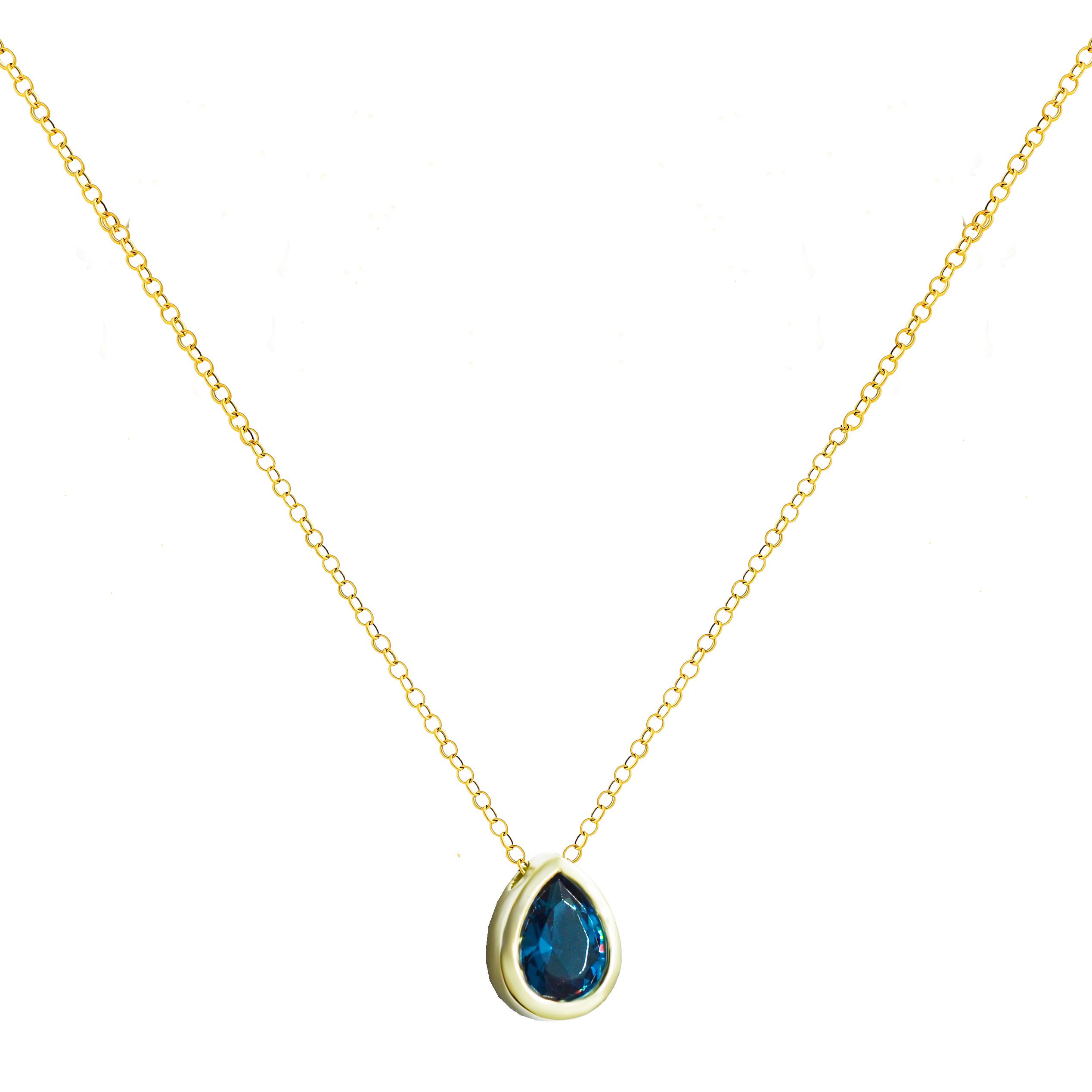 Χρυσό κολιέ με μοτίφ δάκρυ με μπλε πέτρα.