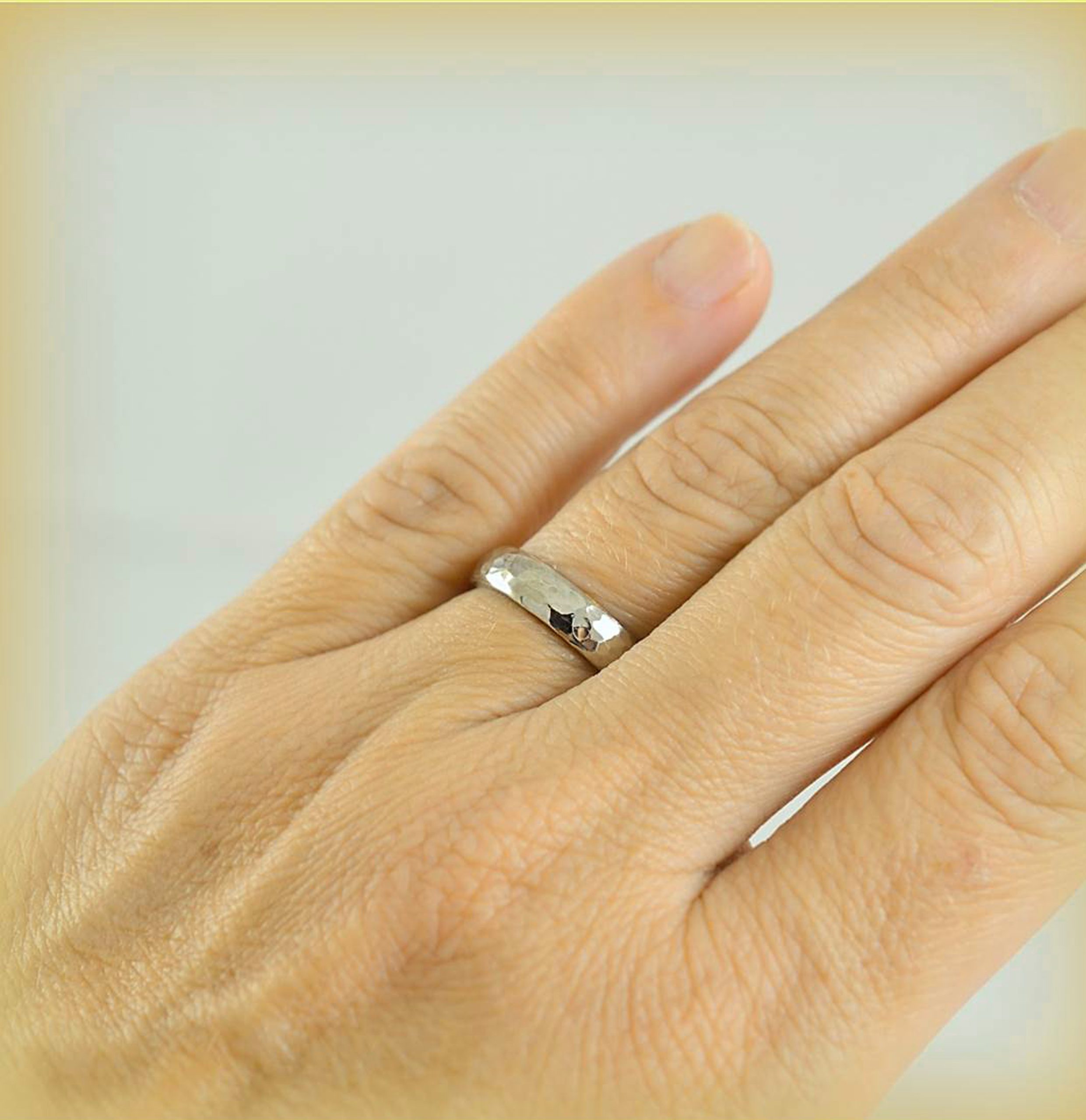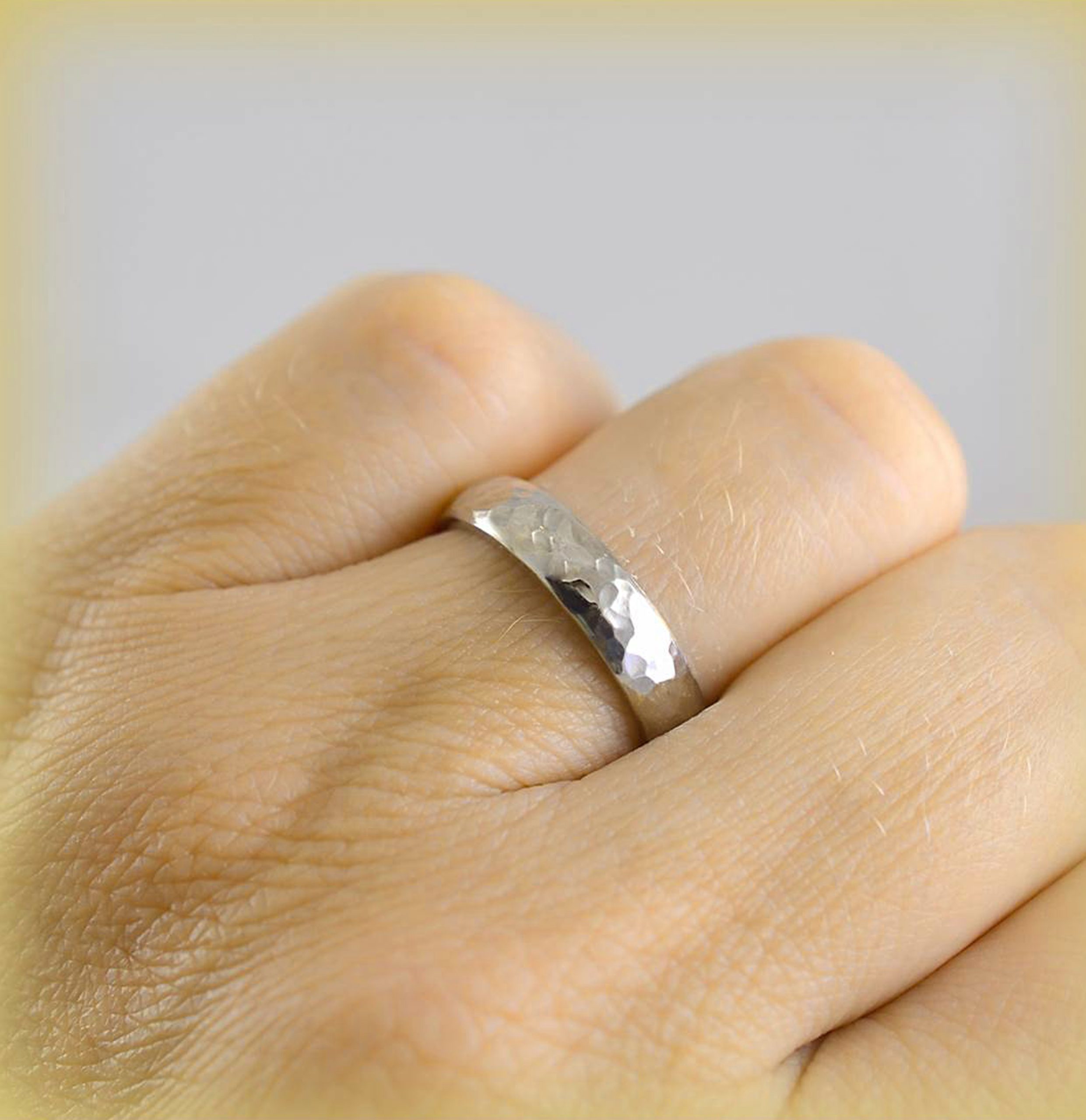 Σφυρήλατη λευκόχρυση βέρα γάμου, φάρδους 4,5mm.