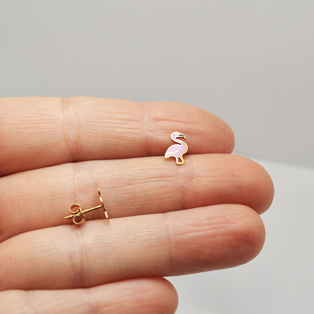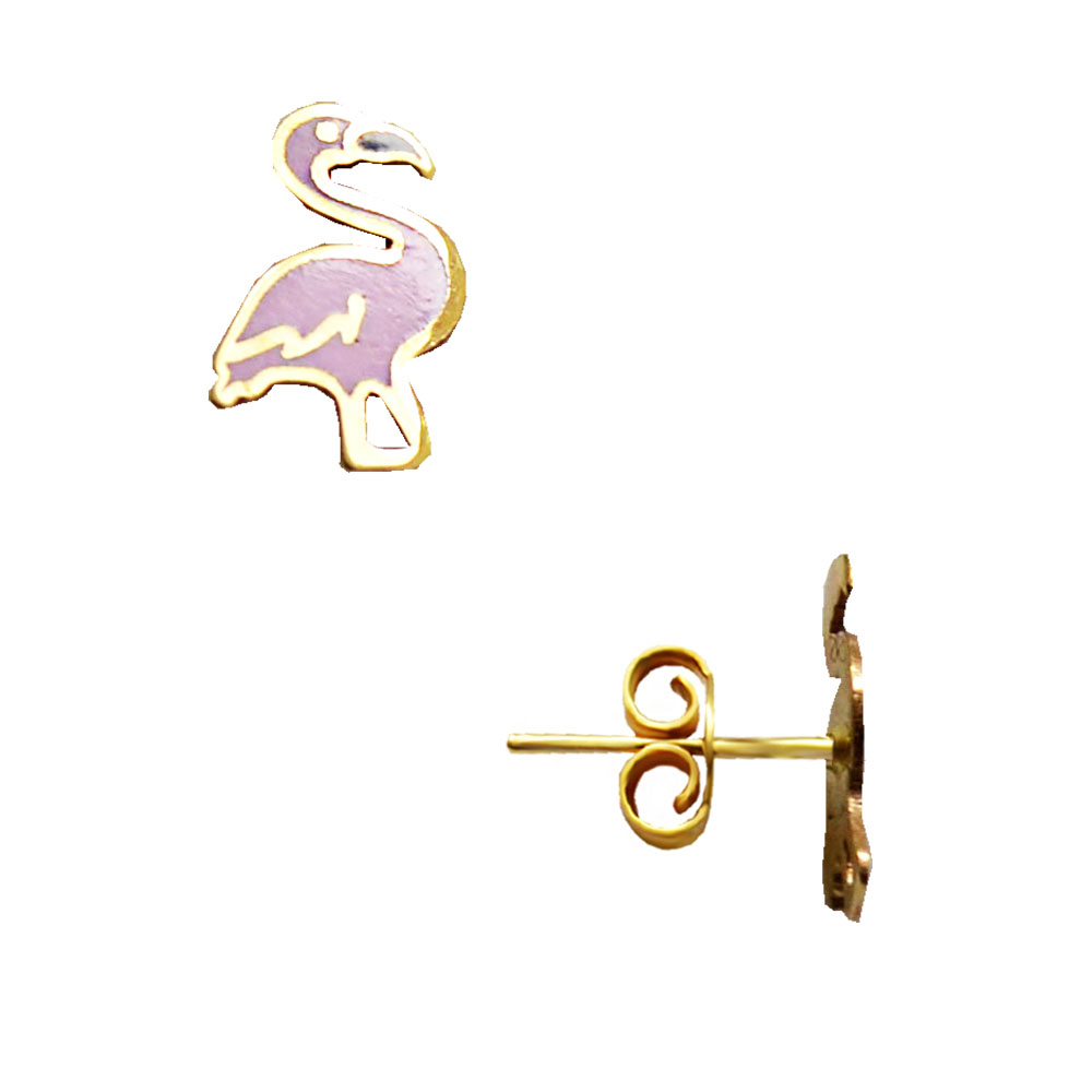 Χρυσά παιδικά σκουλαρίκια φλαμίγκο με επισμάλτωση. Ένα χαριτωμένο κόσμημα για νεαρές αλλά και παιδιά.