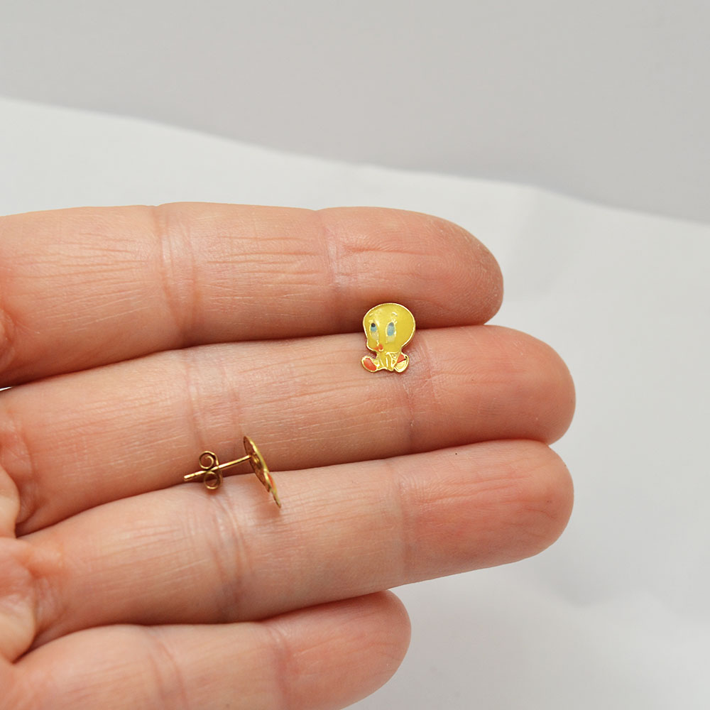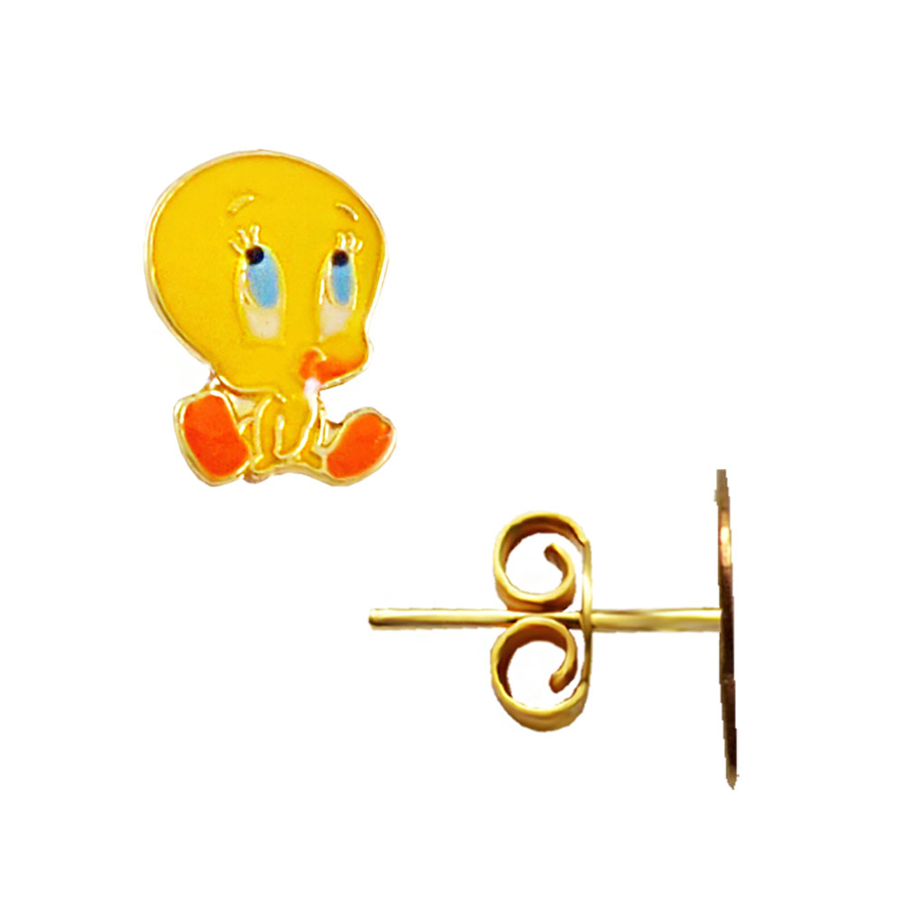 Χρυσά σκουλαρίκια Tweety με επισμάλτωση.