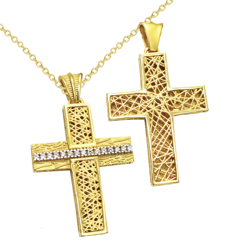 18000m -Χρυσός βαπτιστικός σταυρός 14Κ με αλυσίδα