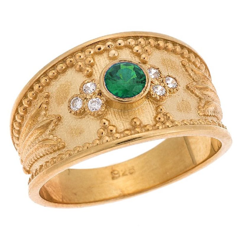 Ένα υπέροχο επιχρυσωμένο ασημένιο βυζαντινό δαχτυλίδι -φάρδος γάμπας 0,5mm- με ανάγλυφα σχέδια και ημιπολίτιμες πέτρες.