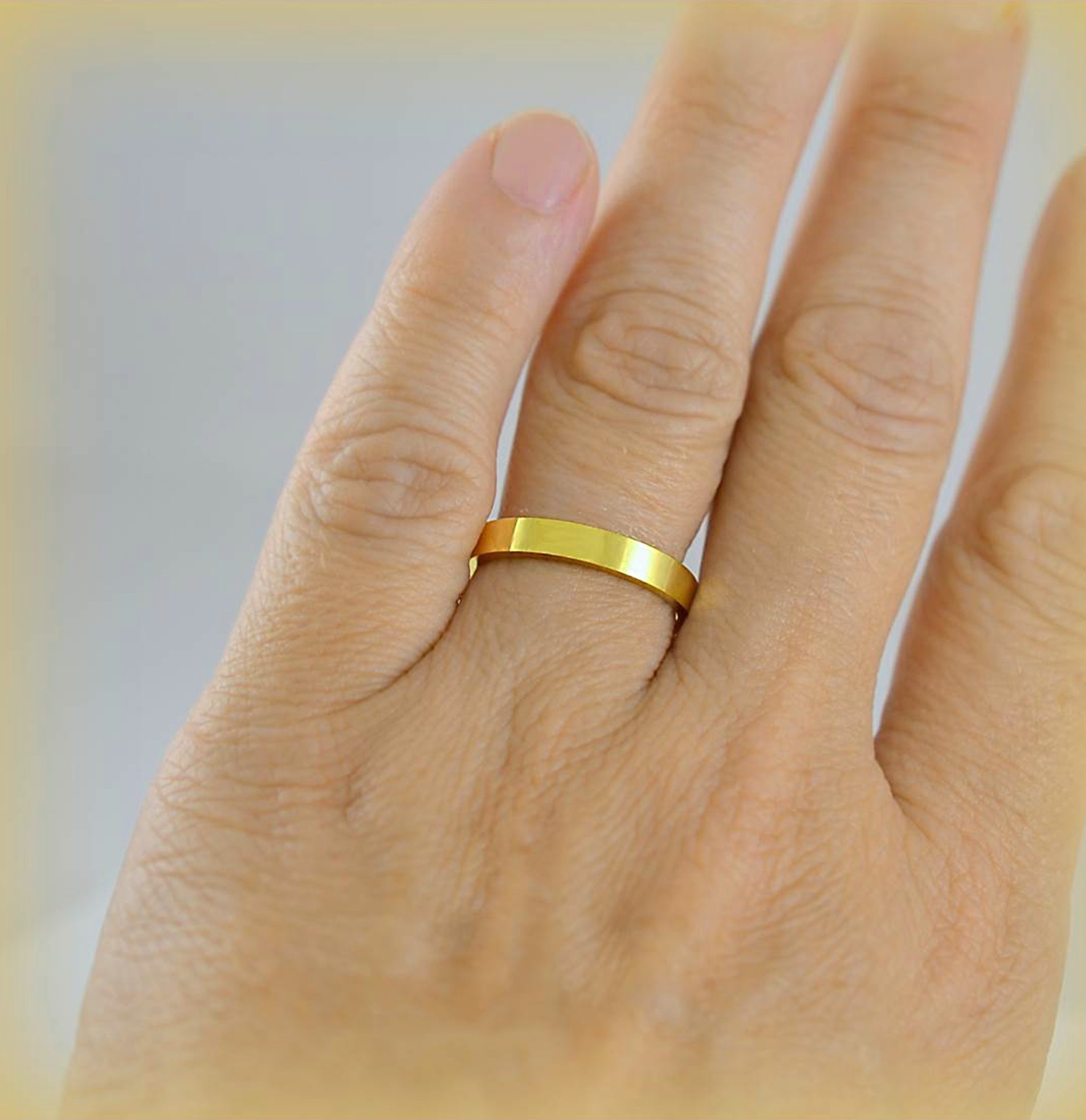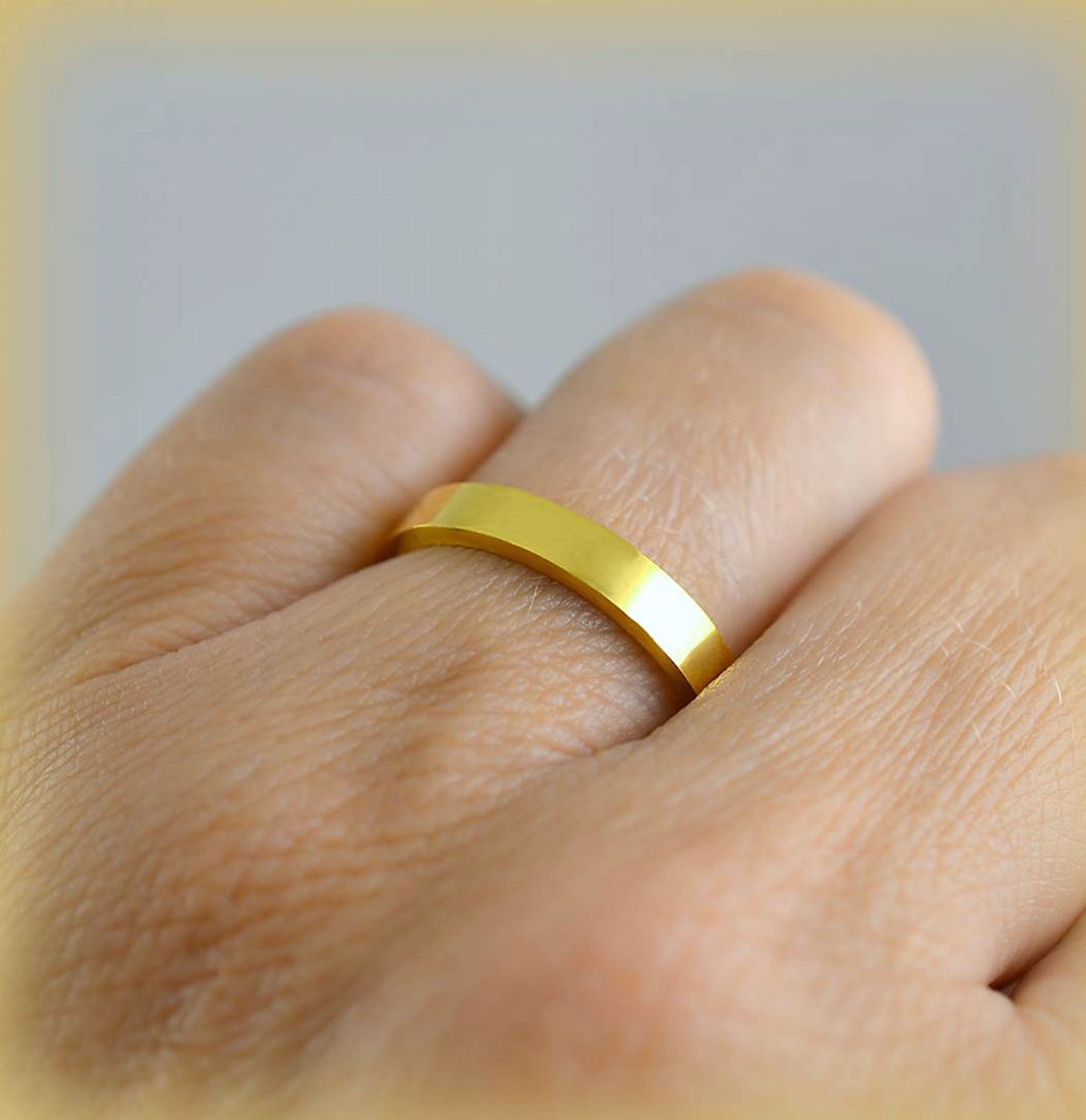Μοντέρνα τετράγωνη χρυσή βέρα γάμου σε λουστρέ φινίρισμα, φάρδους 3,5mm.