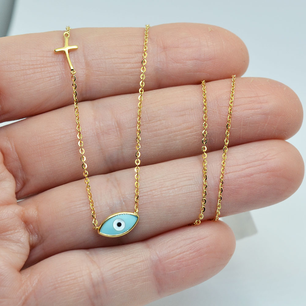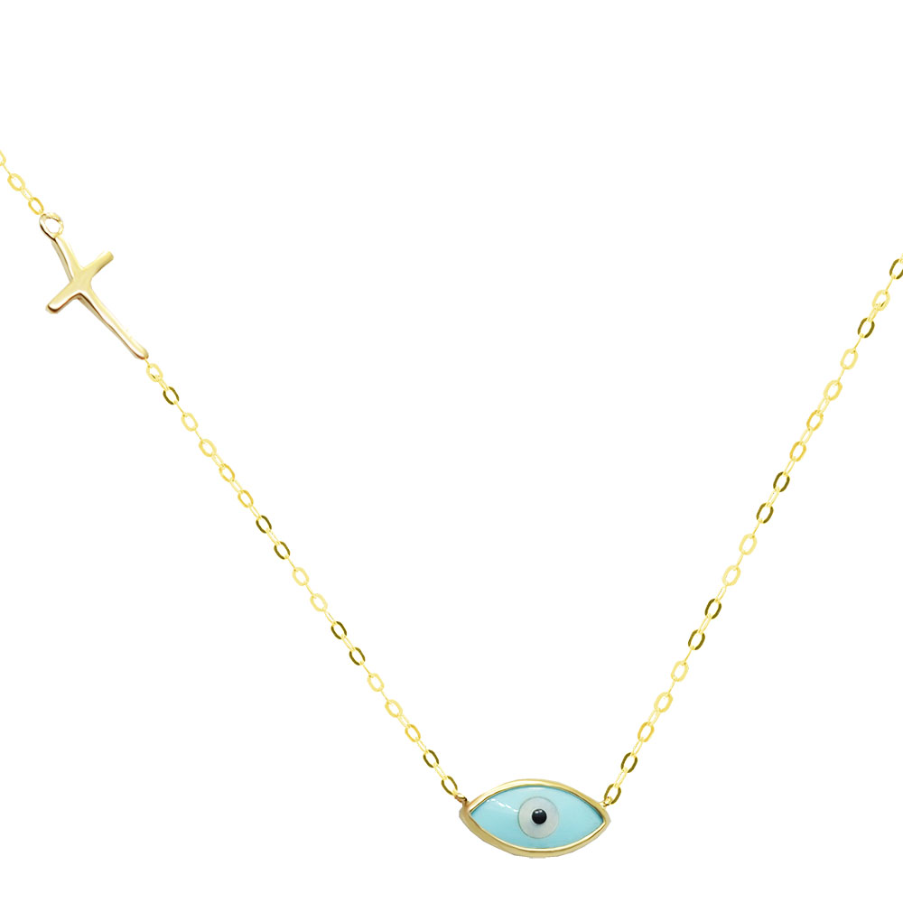 Χρυσό κολιέ με ματάκι και πλαϊνό σταυρουδάκι.