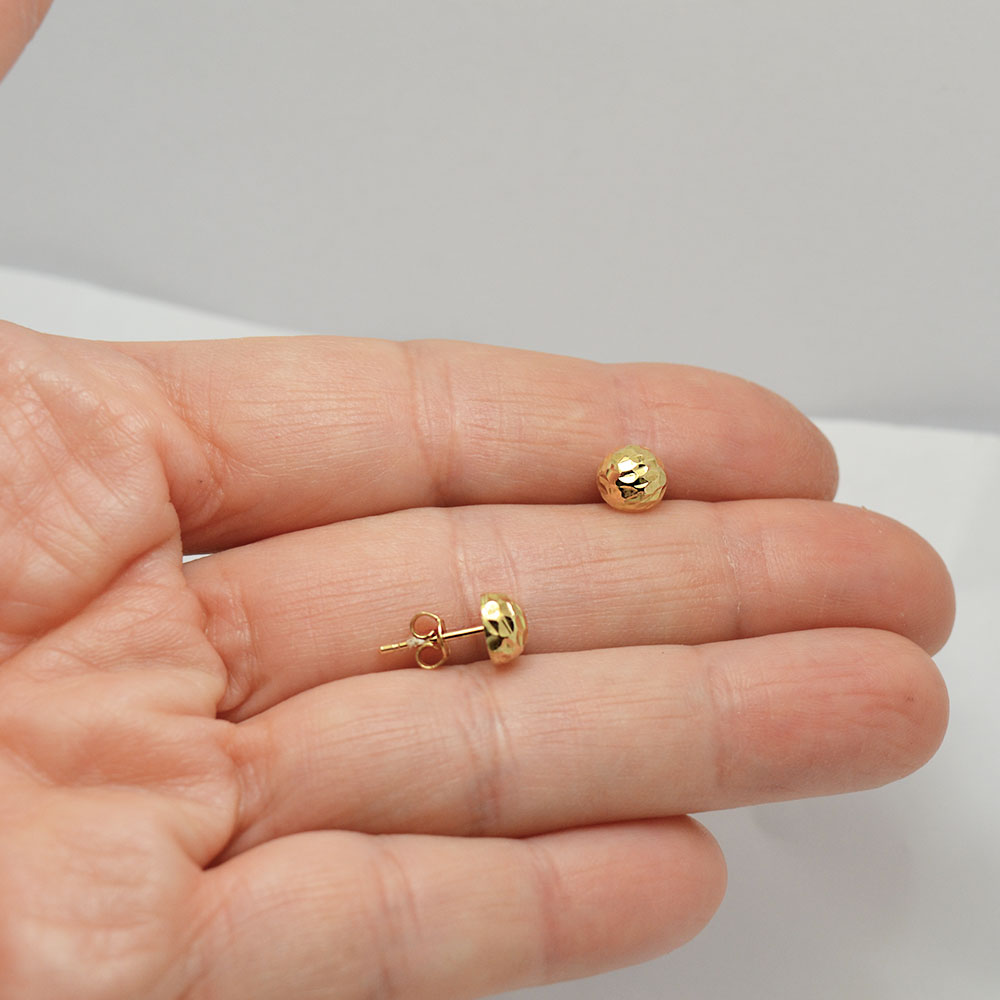 Χρυσά καρφωτά σκουλαρίκια με διαμανταρίσματα που δίνει λάμψη στην μπίλια. Μικρά και διακριτικά ιδανικά για την καθημερινή σας εμφάνιση.
