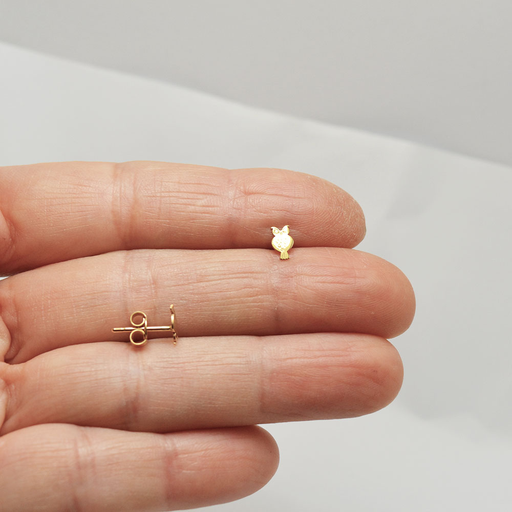 Χρυσά καρφωτά σκουλαρίκια κουκουβάγιες.