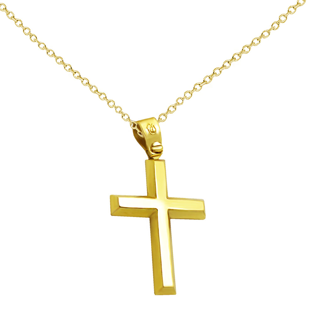 AC133m -Χρυσός βαπτιστικός σταυρός με αλυσίδα 14Κ