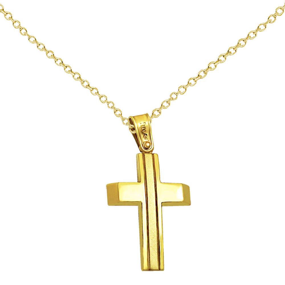 AC134m -Χρυσός βαπτιστικός σταυρός με αλυσίδα 14Κ