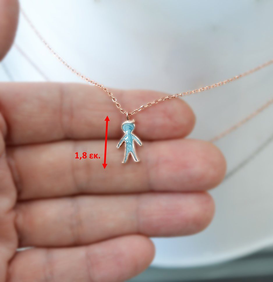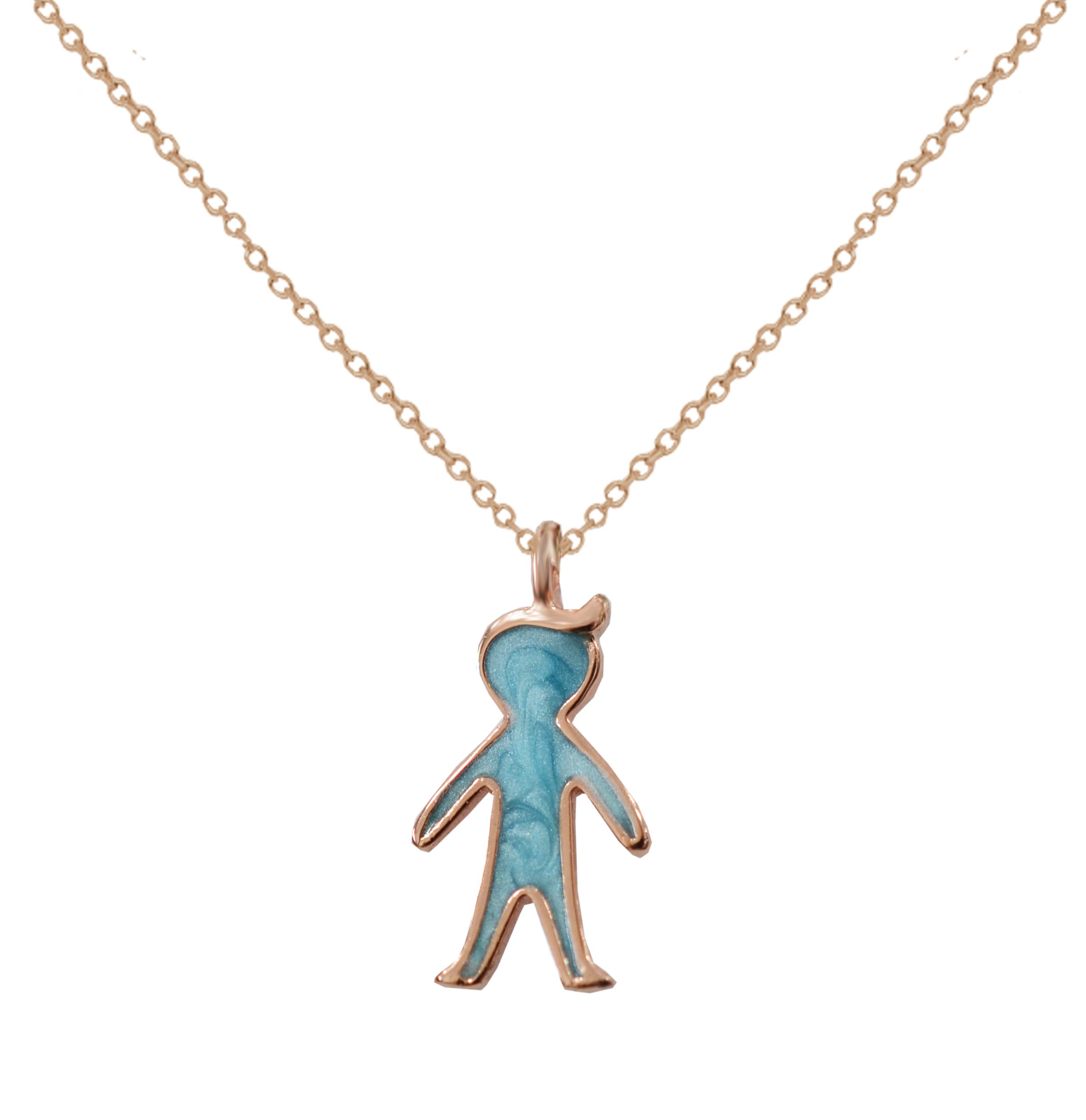 Ροζ ασημένιο κολιέ με μοτίφ αγόρι με γαλάζια επισμάλτωση.