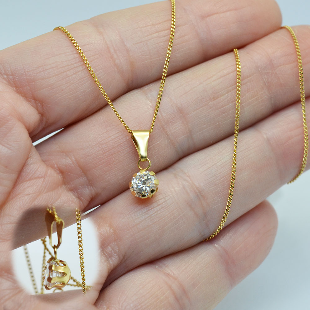 Χρυσό κολιέ με μικρό μοτίφ με λευκή πέτρα.