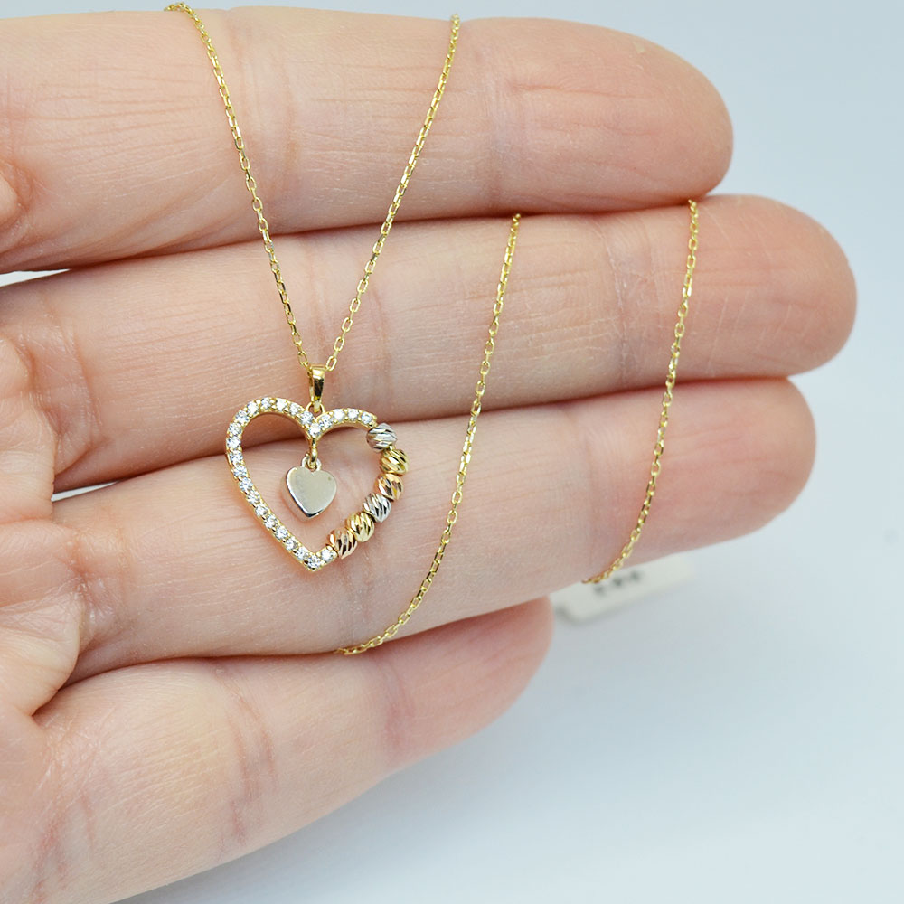 Χρυσό κολιέ με μοτίφ καρδιά με χρωματιστά στοιχεία.