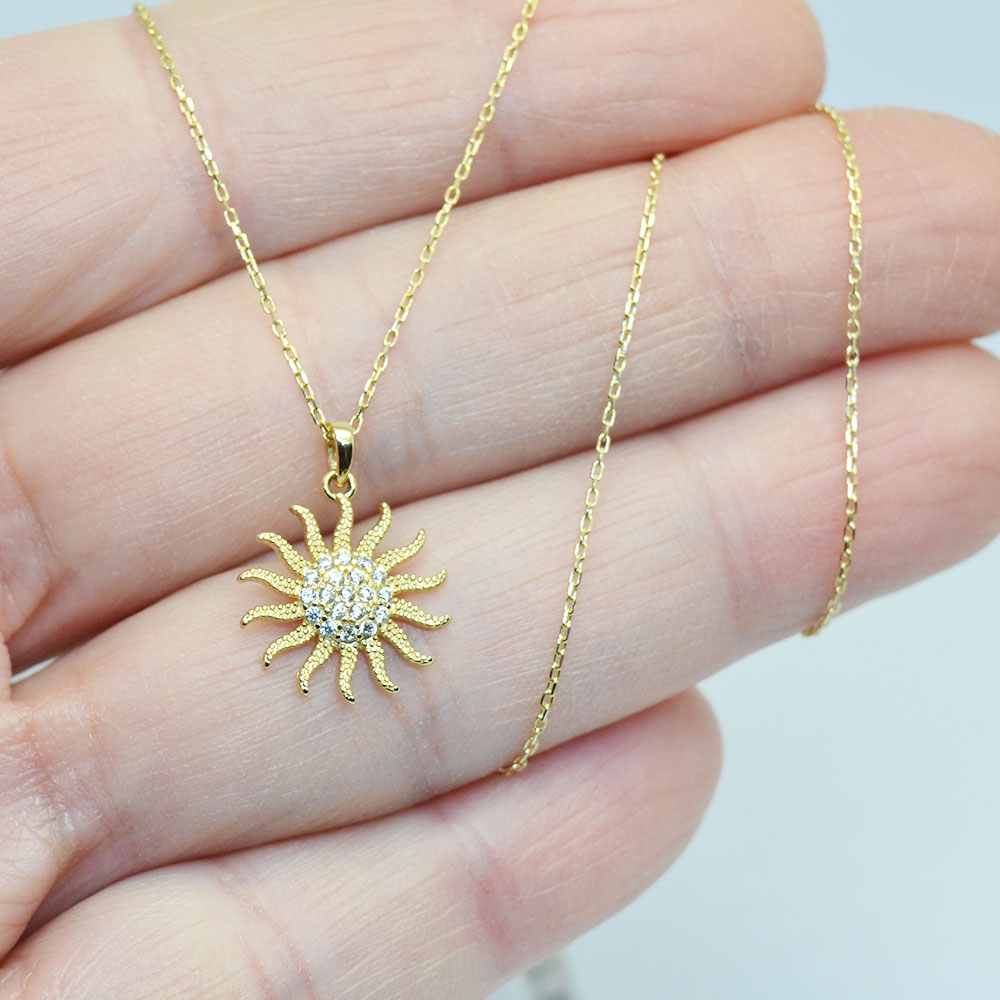 Χρυσό κολιέ με κρεμαστό μοτίφ ήλιος με πέτρες.