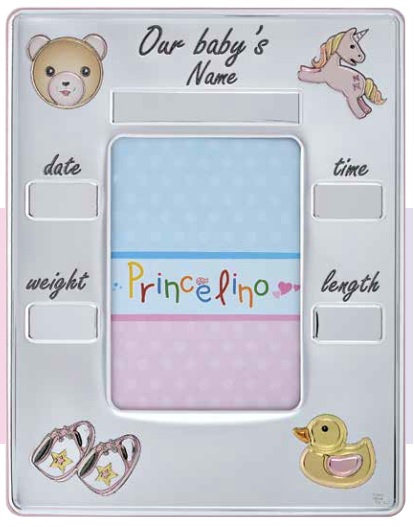Ασημένια κορνίζα γέννησης όπου γράφετε ημερομηνία & ώρα γέννησς και βάρος & ύψος του νεογέννητου. Ένα όμορφο και χρηστικό δώρο για γέννηση ή βάφτιση βρέφους.