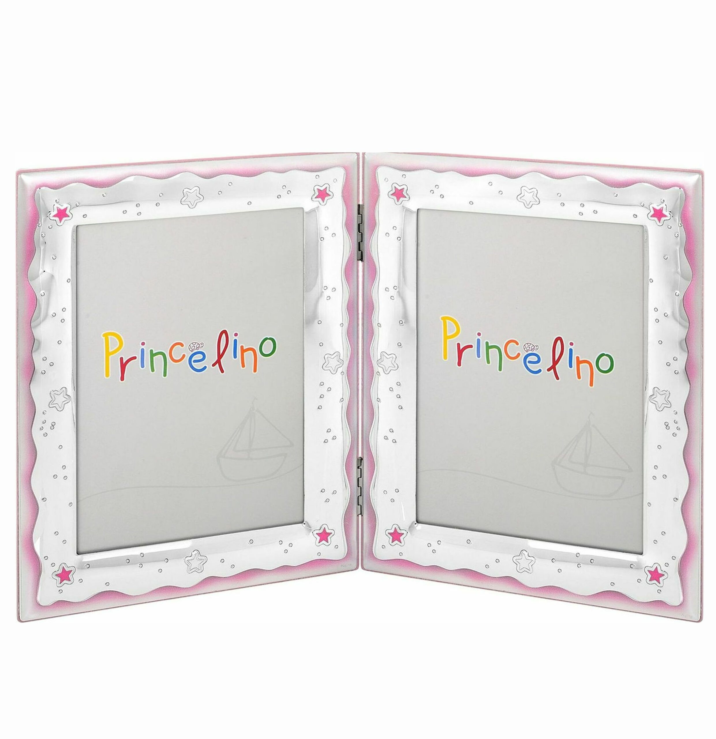 MA143-2B-RR -Ασημένια διπλή παιδική κορνίζα 2Χ13Χ18 εκ.