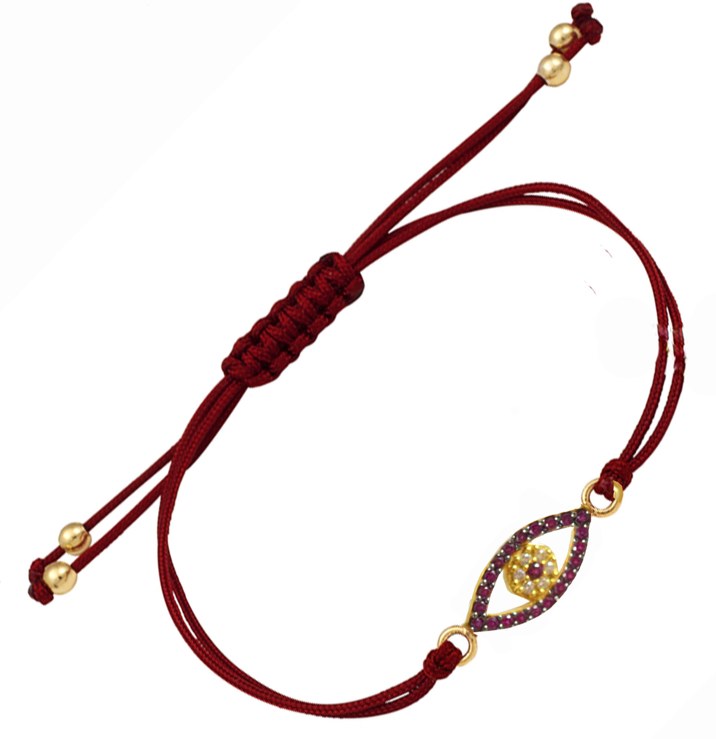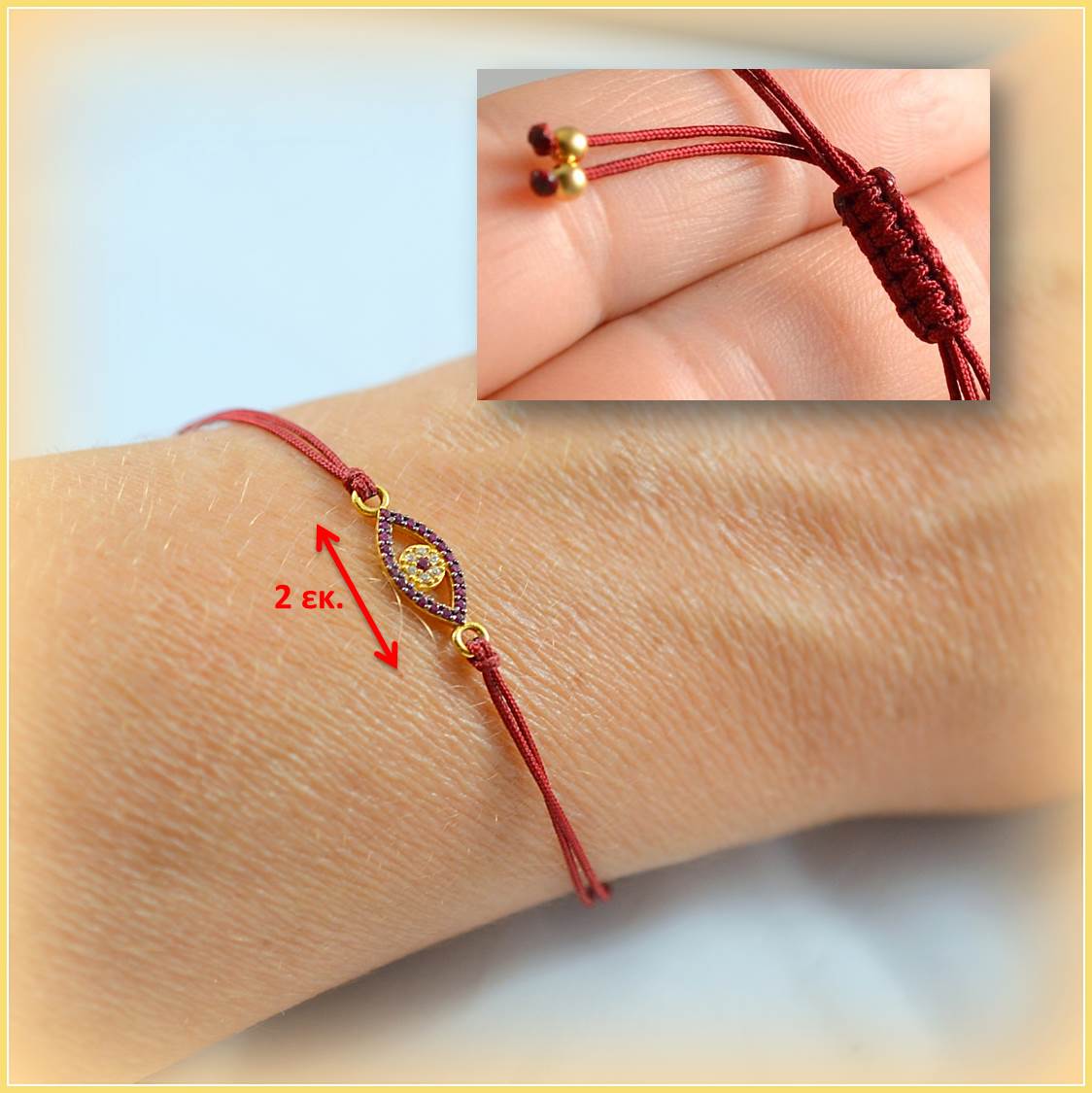 Βραχιόλι μακραμέ με χρυσό διακοσμητικό ματάκι διακοσμημένο με ζιργκόν πετρούλες. Μοντέρνο και κομψό βραχιόλι για κάθε μέρα.