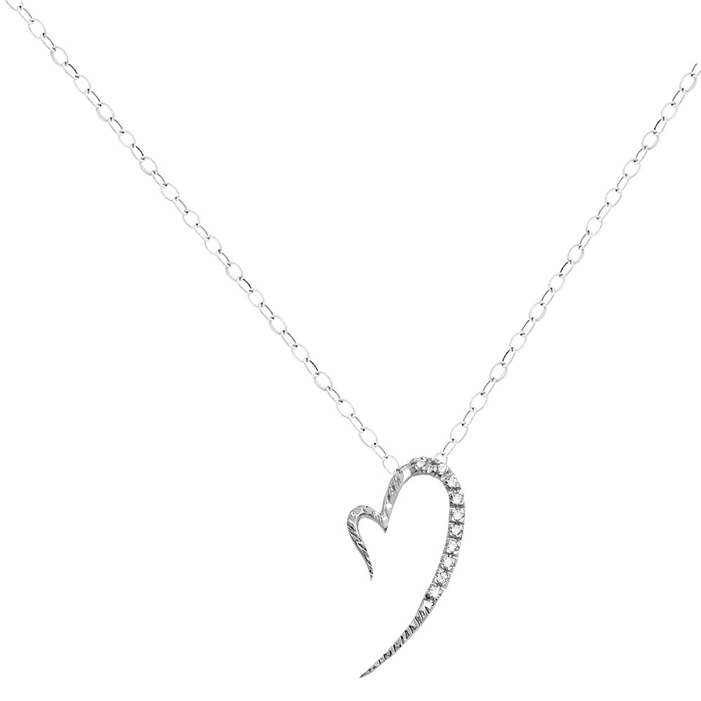 Λευκόχρυσο κολιέ με κρεμαστό μοτίφ καρδιά με λευκές πέτρες.