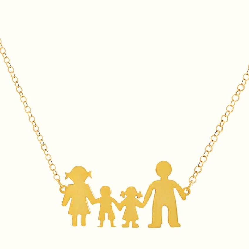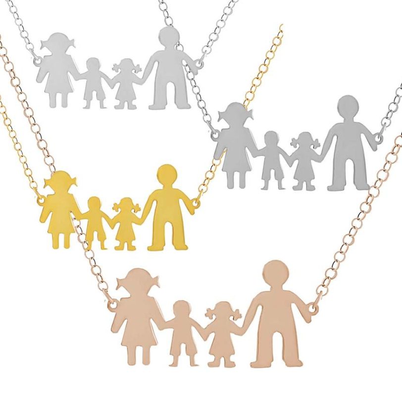 Ασημένιο κολιέ οικογένεια με δυο παιδάκια. Μπορείτε να επιλέξετε ακριβώς τα μέλη της οικογενείας σας (ακόμα και το κατοικίδιο σας), προσθέτοντας, αφαιρώντας ή αλλάζοντας φιγούρες.