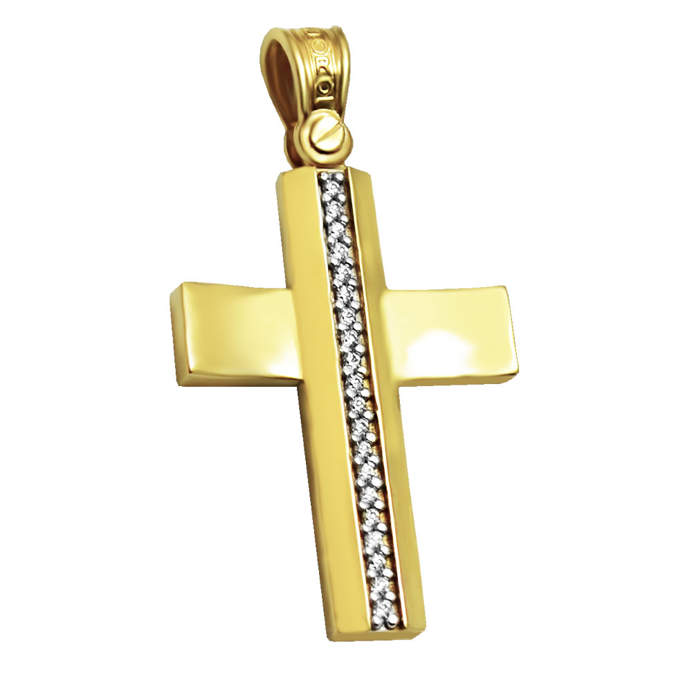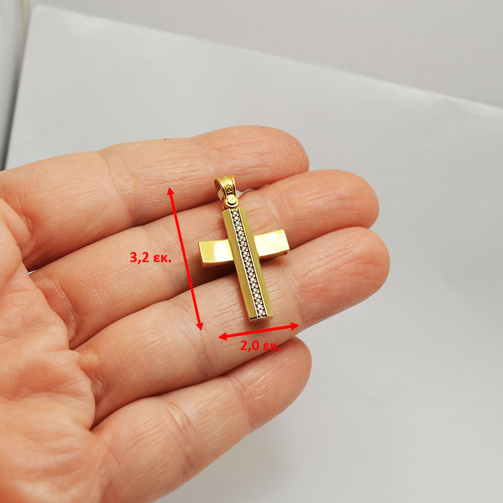Χρυσός βαπτιστικός σταυρός με λευκές ζιργκόν πέτρες.