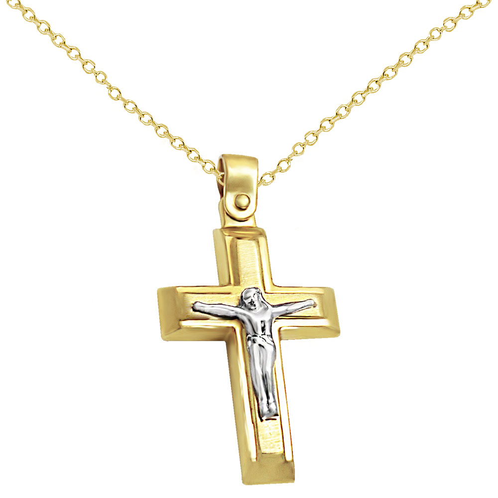 ST19008m -Χρυσός βαπτιστικός σταυρός με αλυσίδα 14Κ