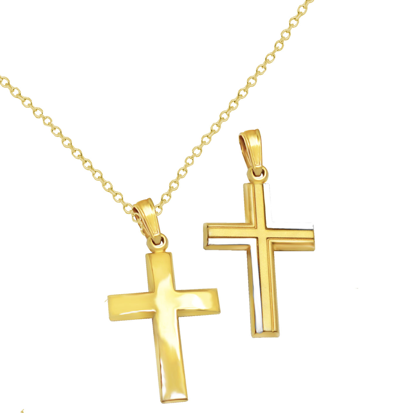 ST19835m -Χρυσός βαπτιστικός σταυρός 14Κ με αλυσίδα
