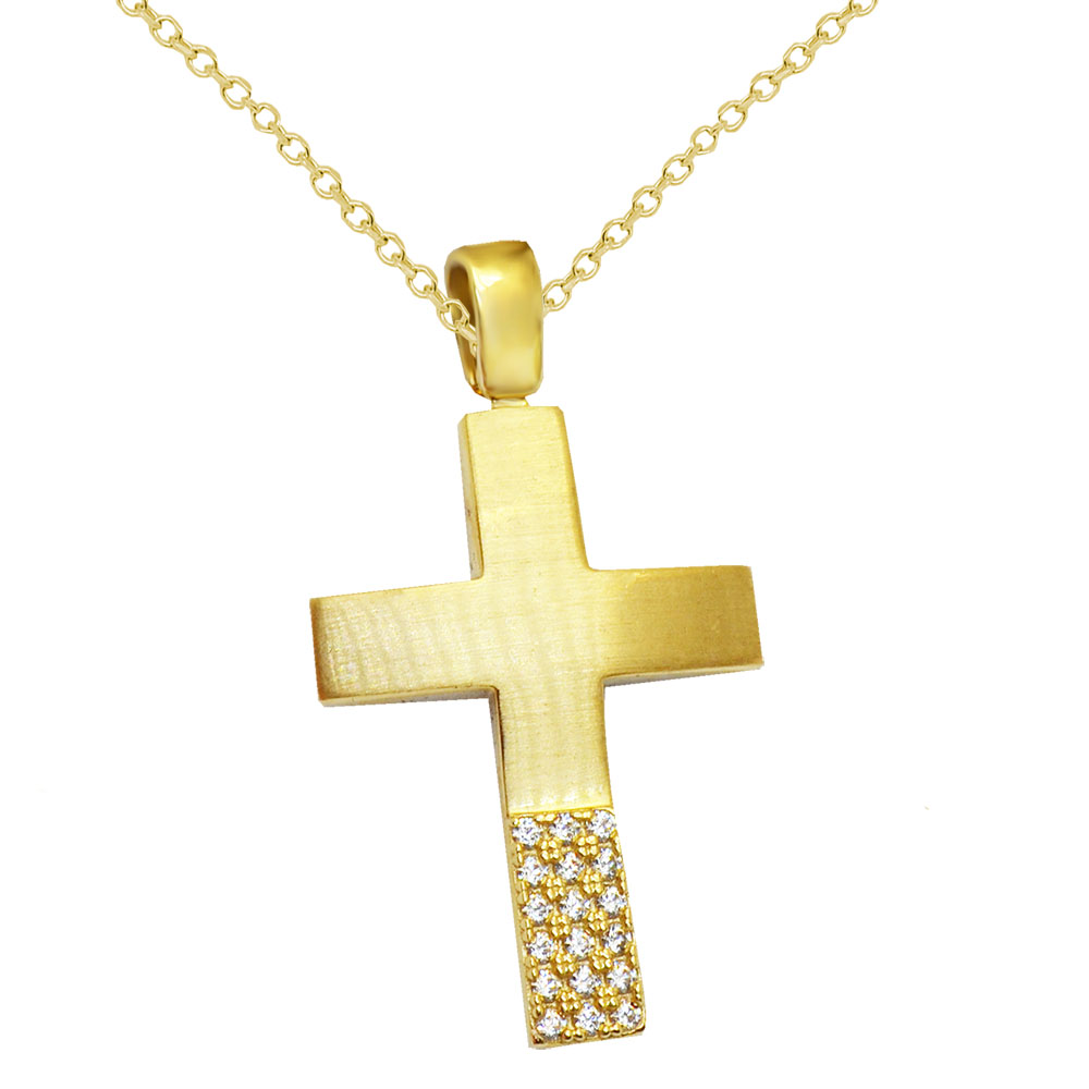 STAGAPm -Χρυσός βαπτιστικός σταυρός 14Κ με αλυσίδα