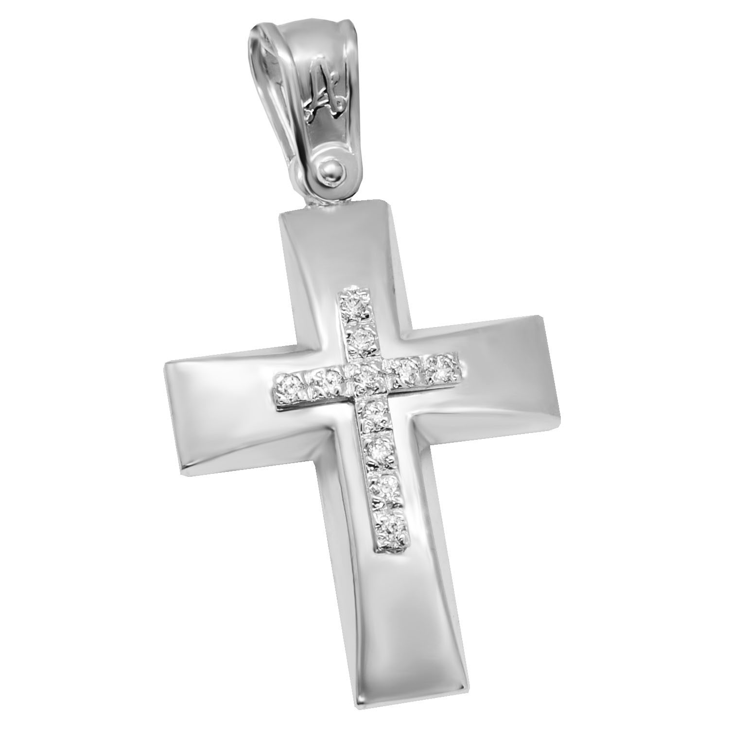 STAL121m -Λευκόχρυσος βαπτιστικός σταυρός 14Κ