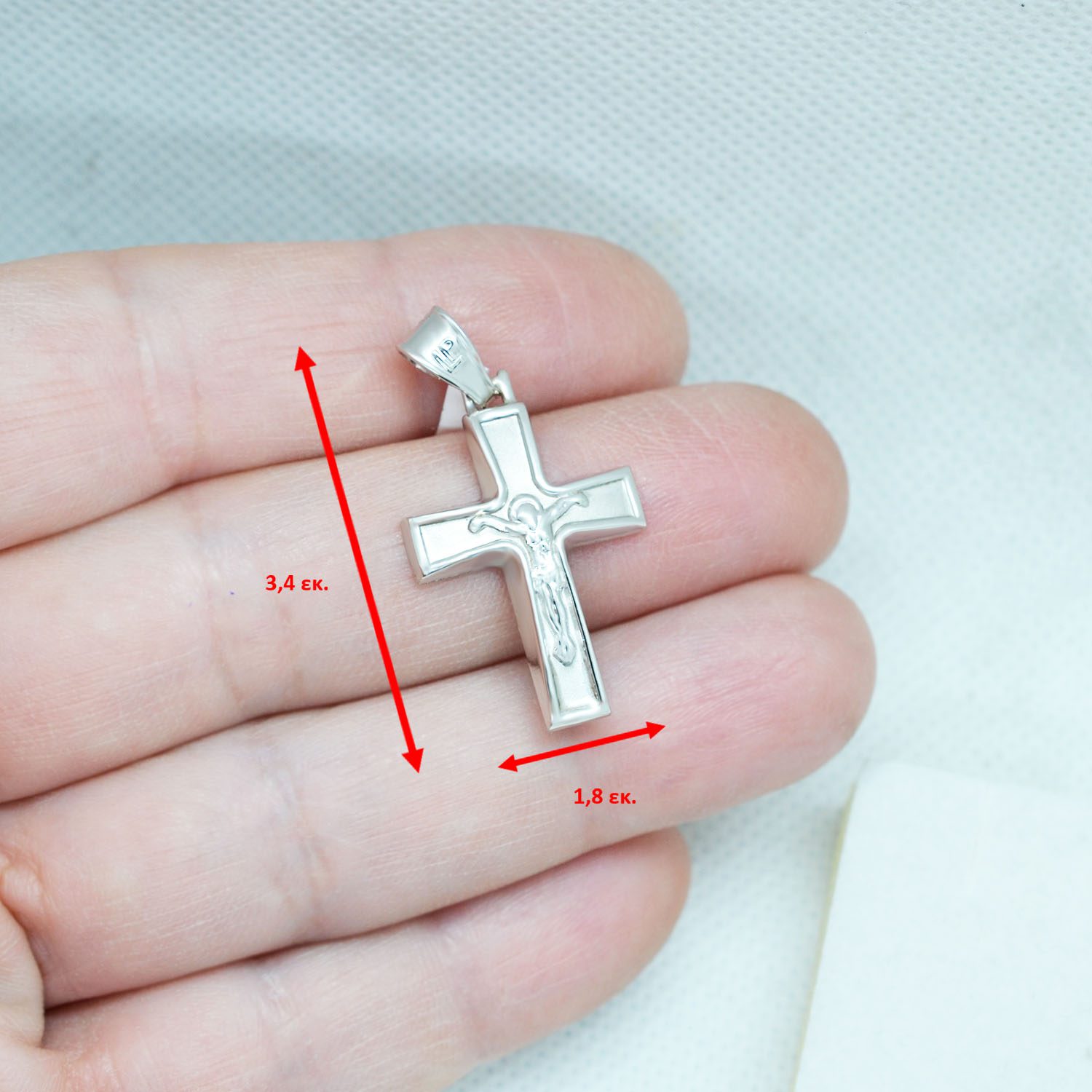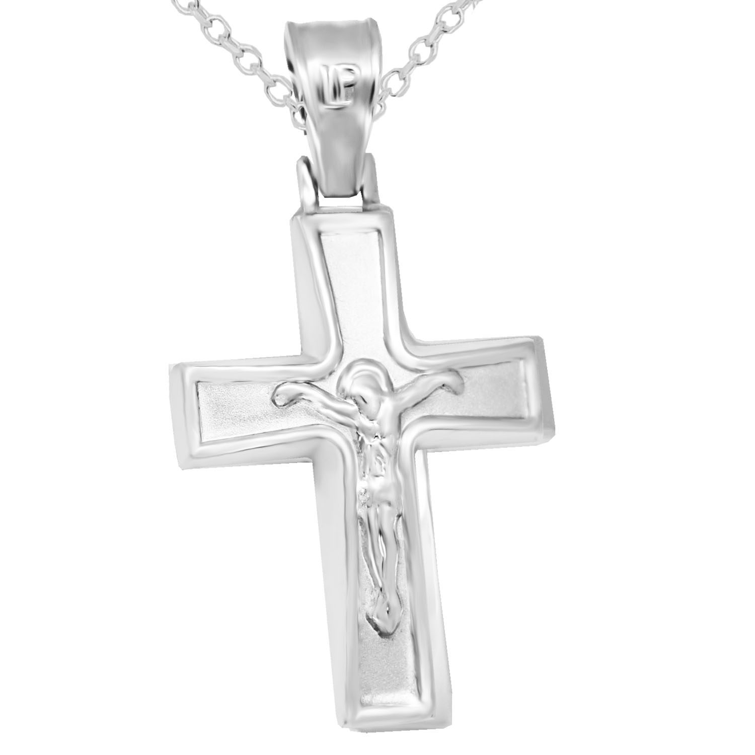 STAL127m -Λευκόχρυσος βαπτιστικός σταυρός 14Κ με αλυσίδα