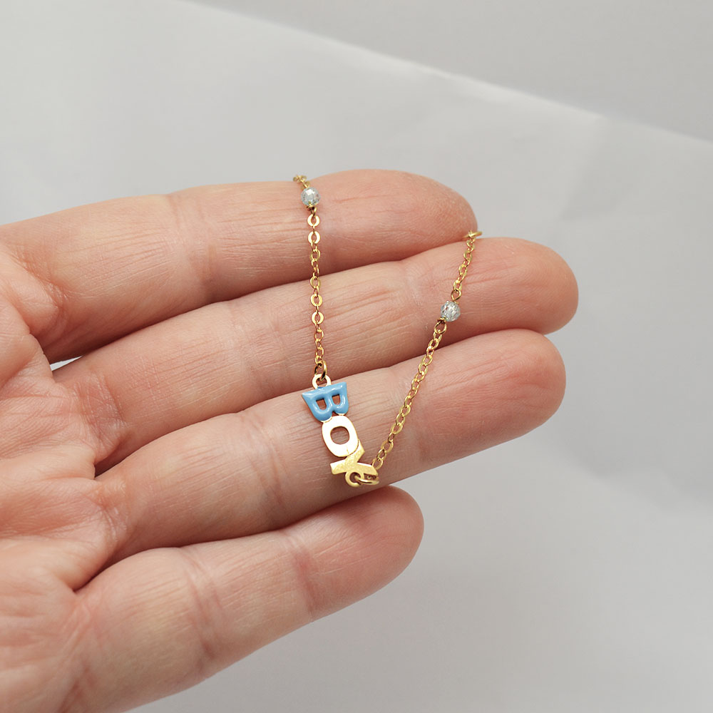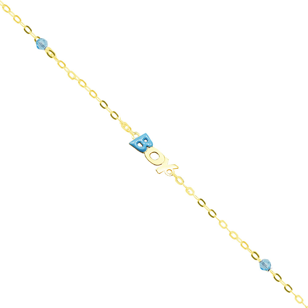 Χρυσή αλυσίδα χεριού με την λέξη BOY και γαλάζιες πέτρες.