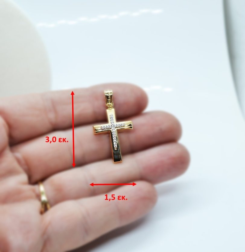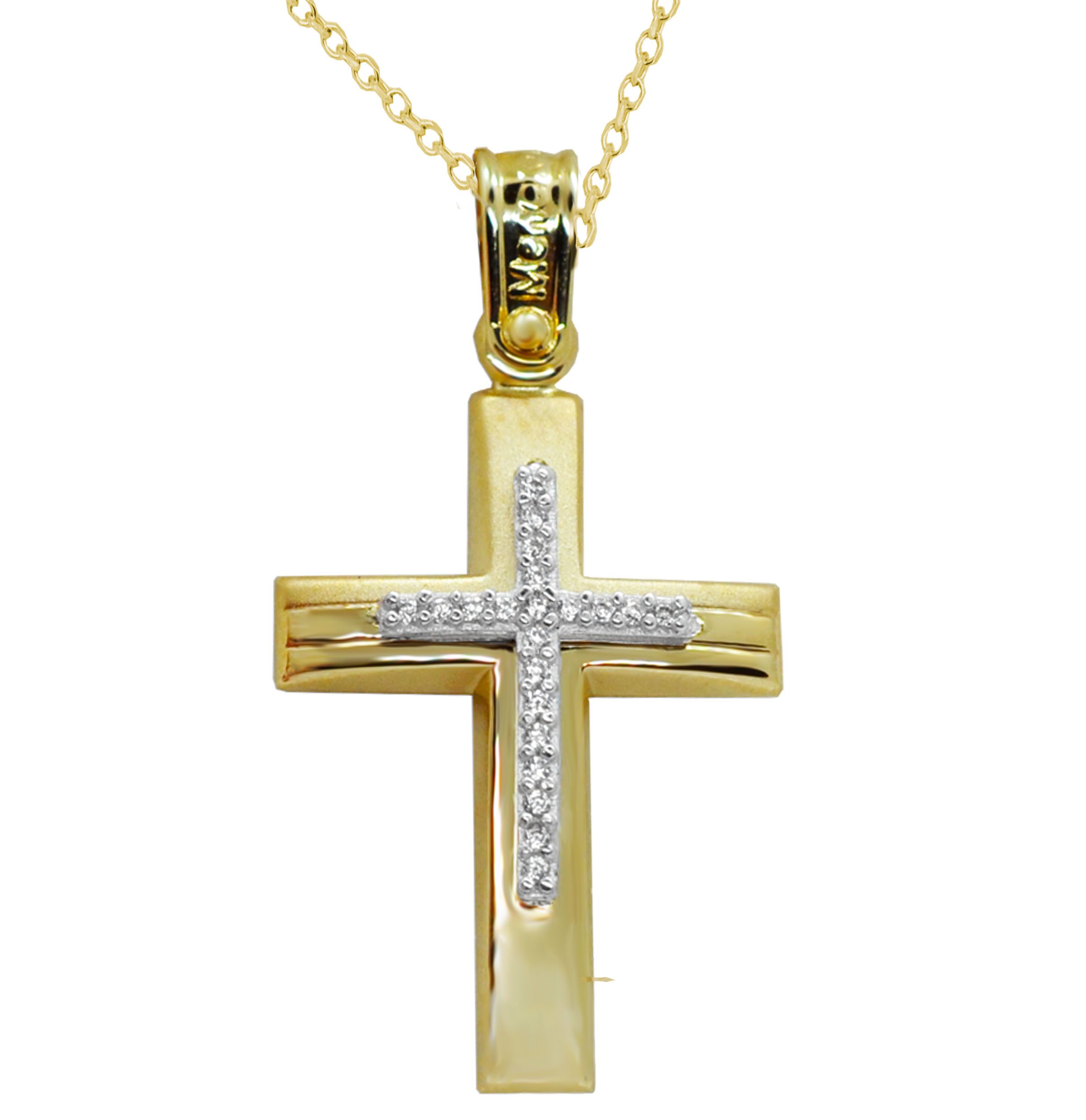 STB6-11ζ -Χρυσός βαπτιστικός σταυρός με αλυσίδα 14Κ