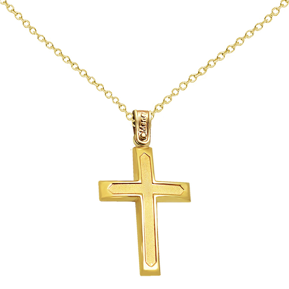 STB7-103m -Χρυσός βαπτιστικός σταυρός με αλυσίδα 14Κ