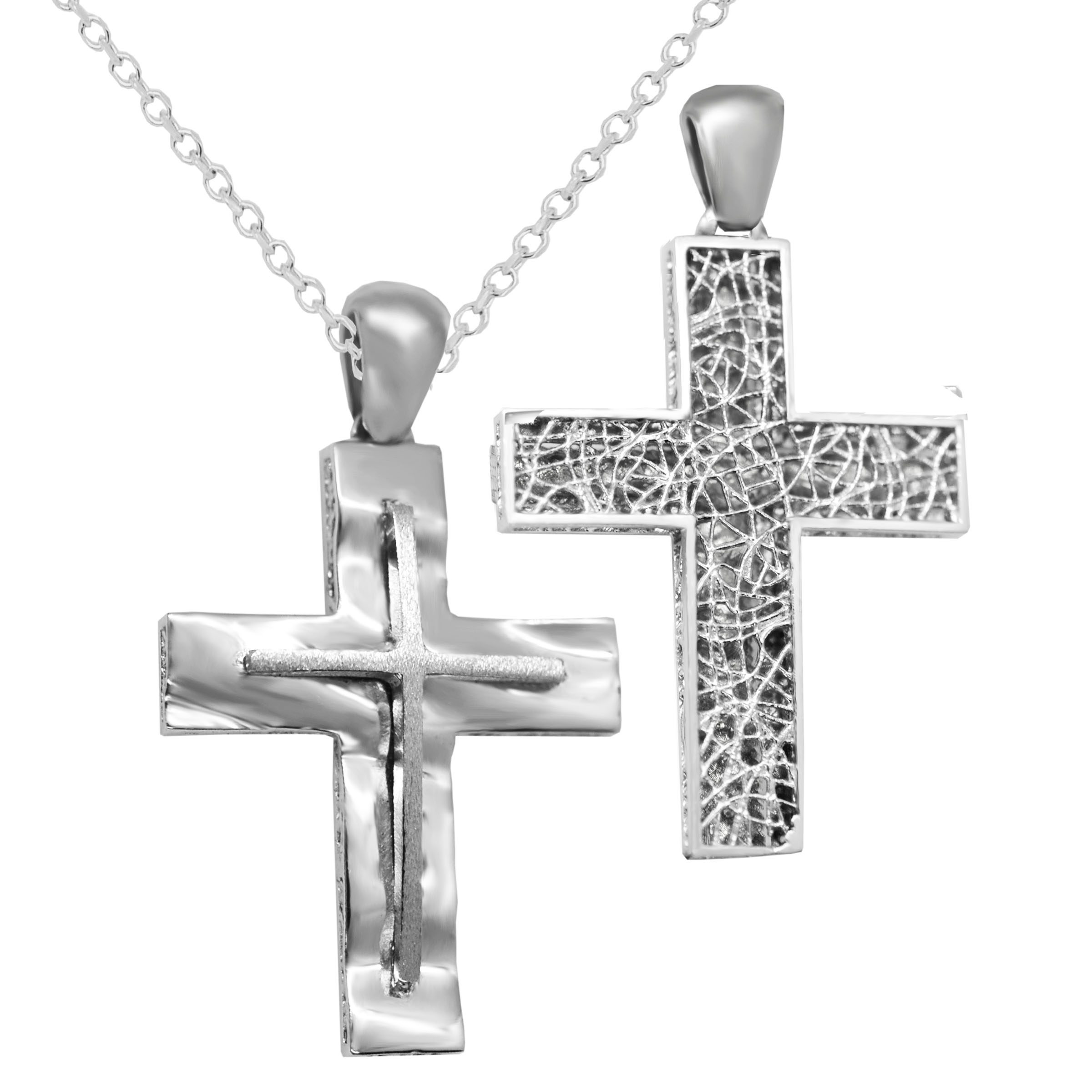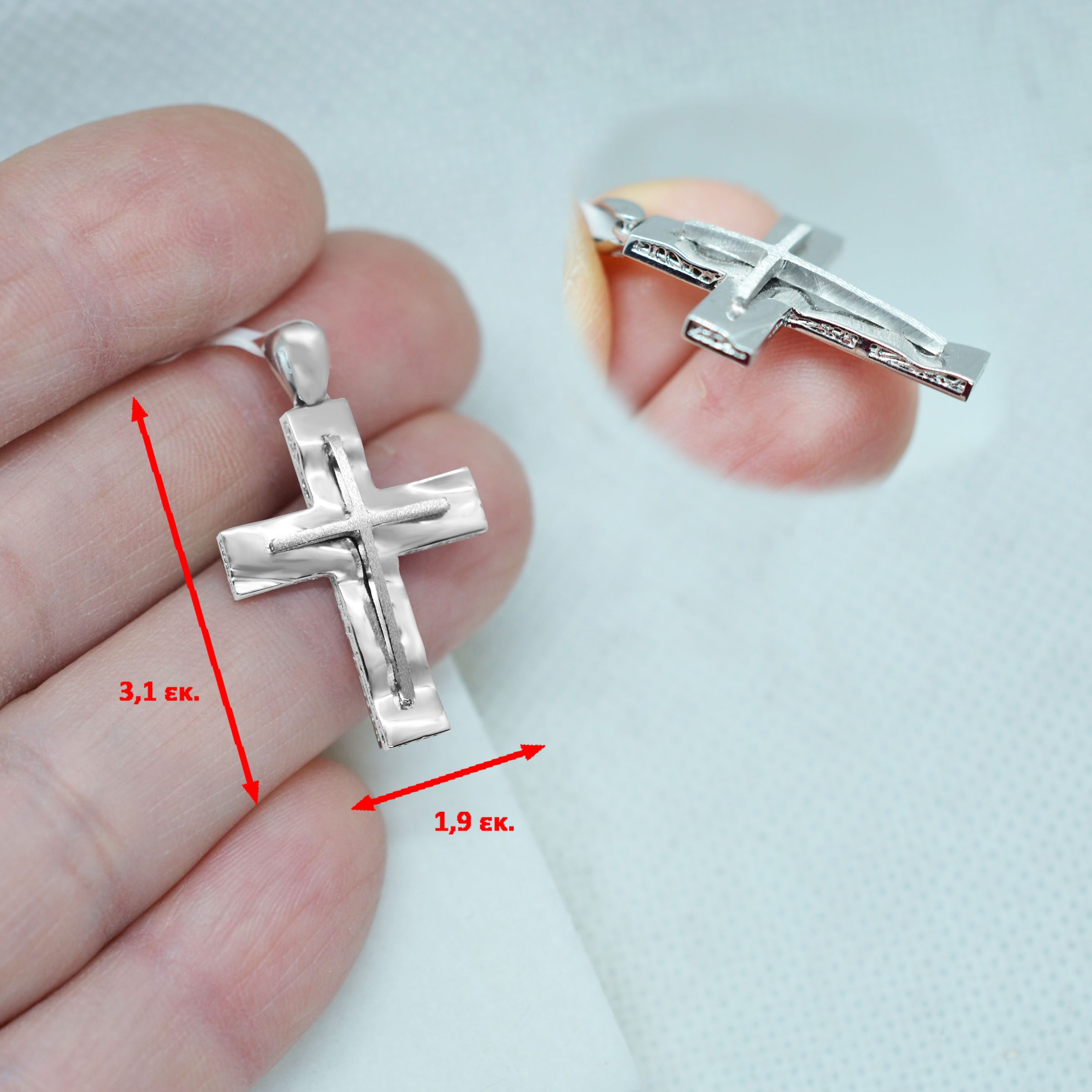 STPR14ζ -Λευκόχρυσος βαπτιστικός σταυρός 14Κ με αλυσίδα
