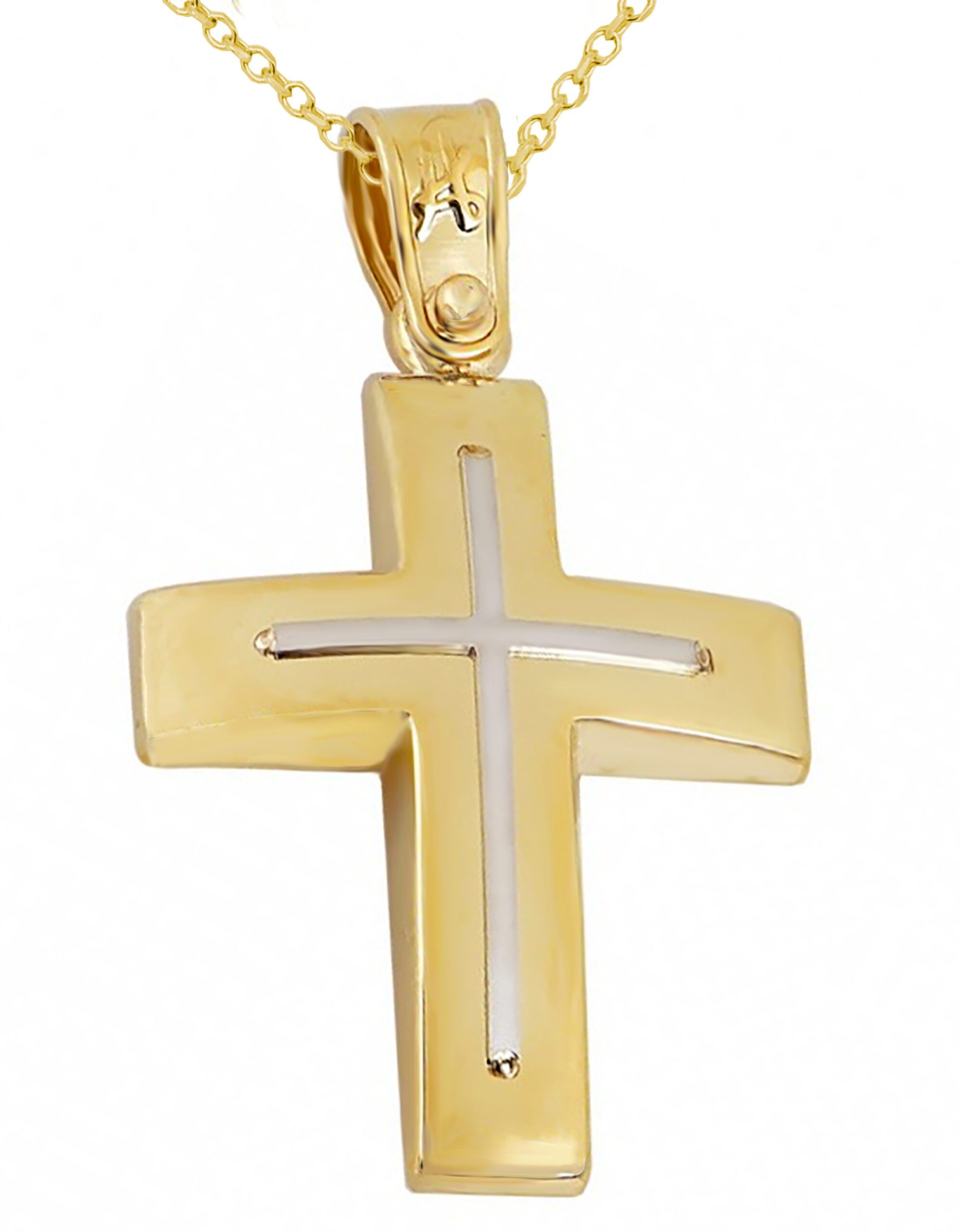 STPR31ζ -Χρυσός βαπτιστικός σταυρός 14Κ με αλυσίδα