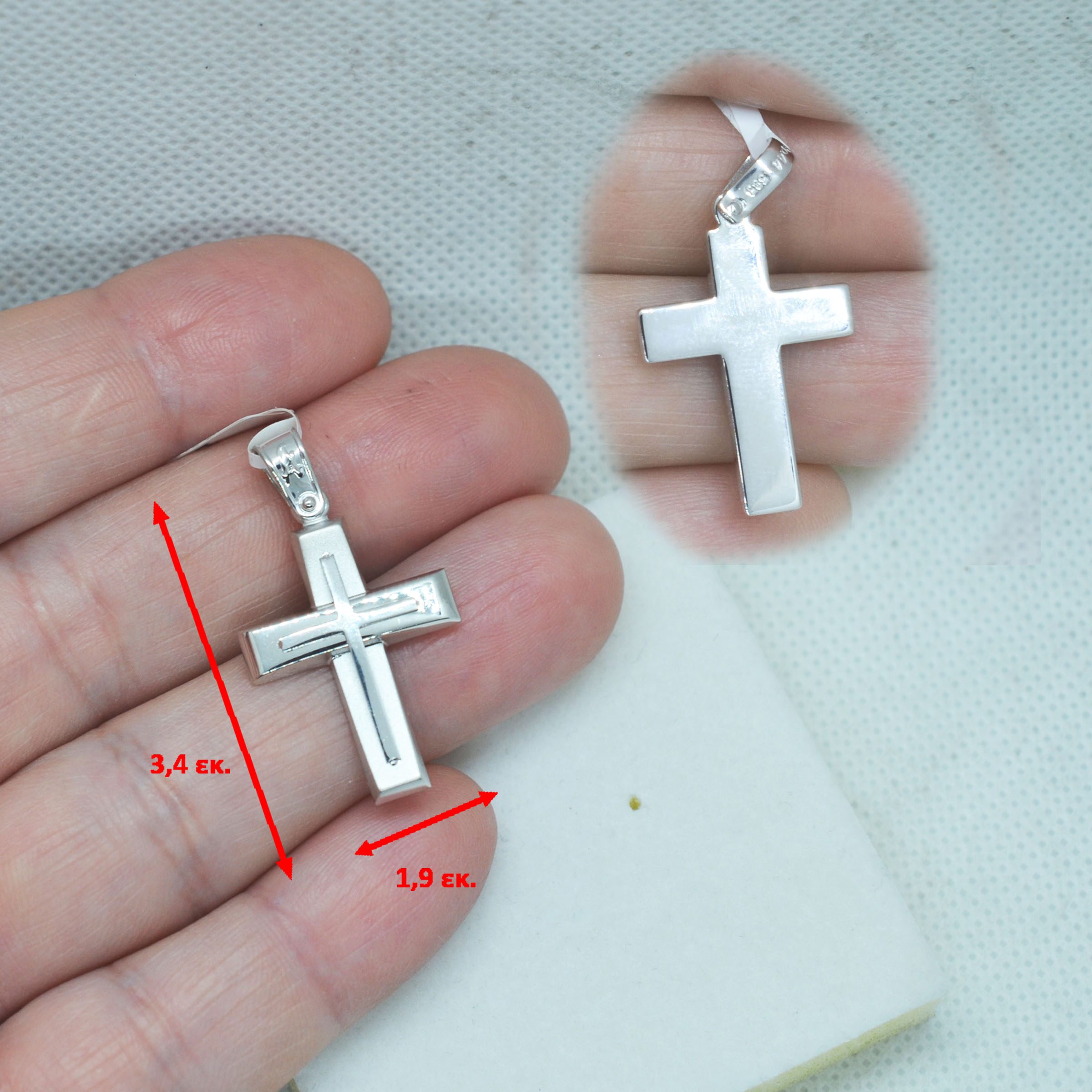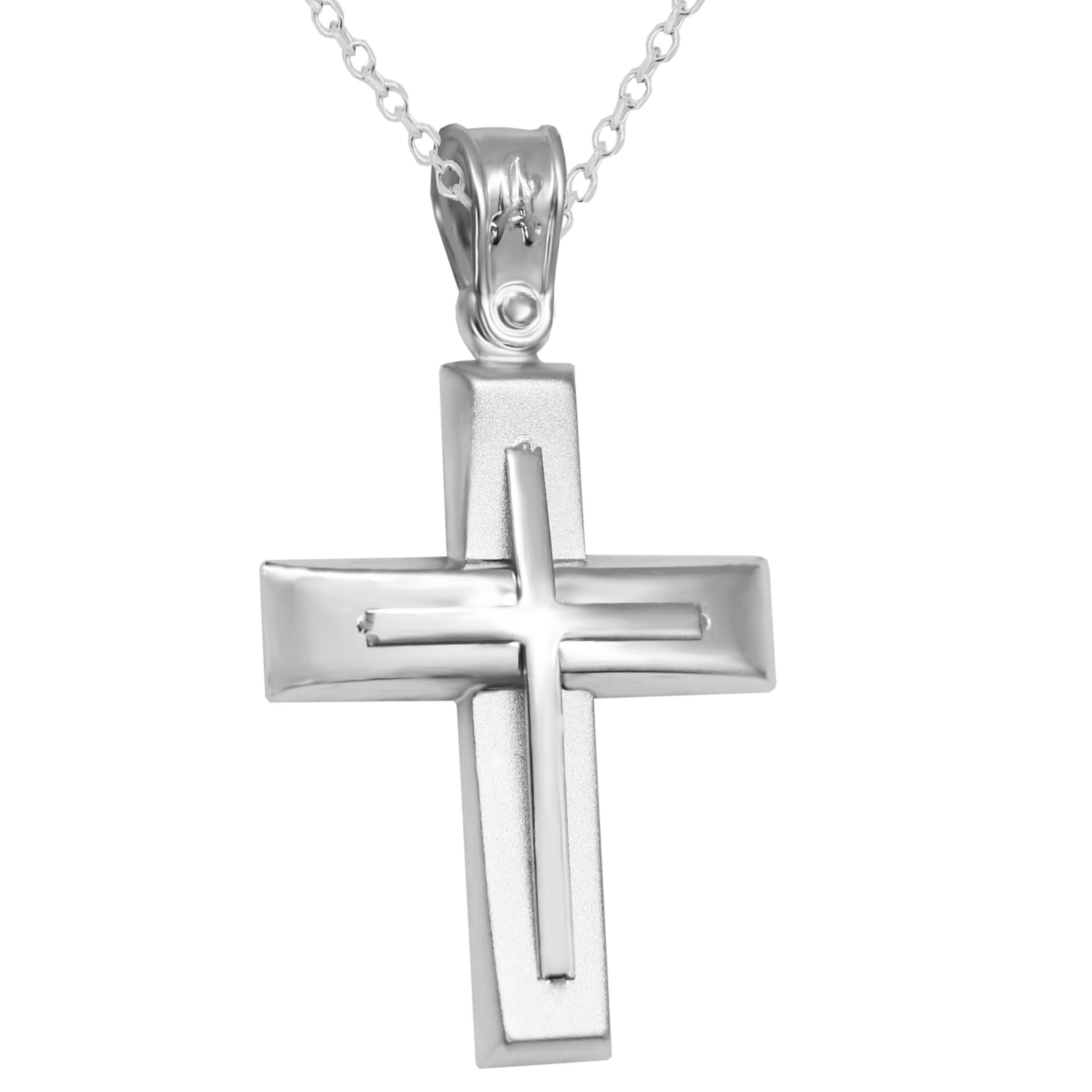 STPR44ζ -Λευκόχρυσος βαπτιστικός σταυρός 14Κ με αλυσίδα