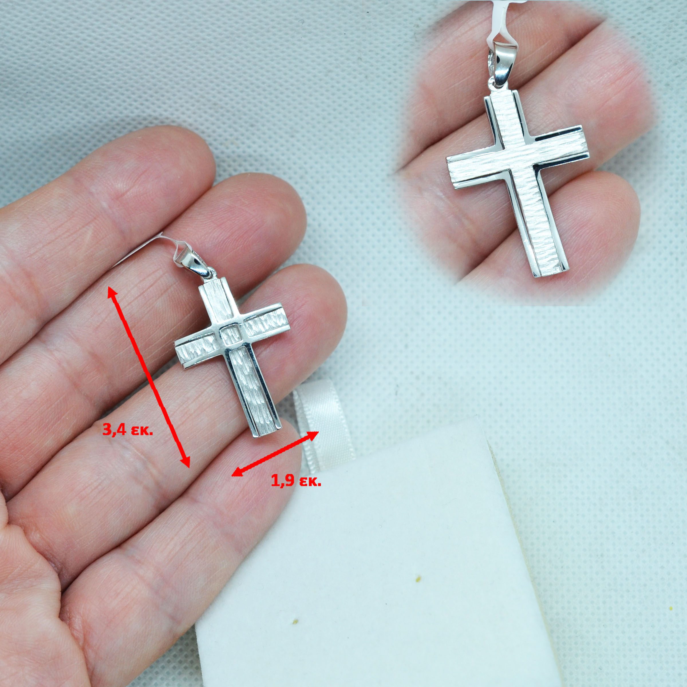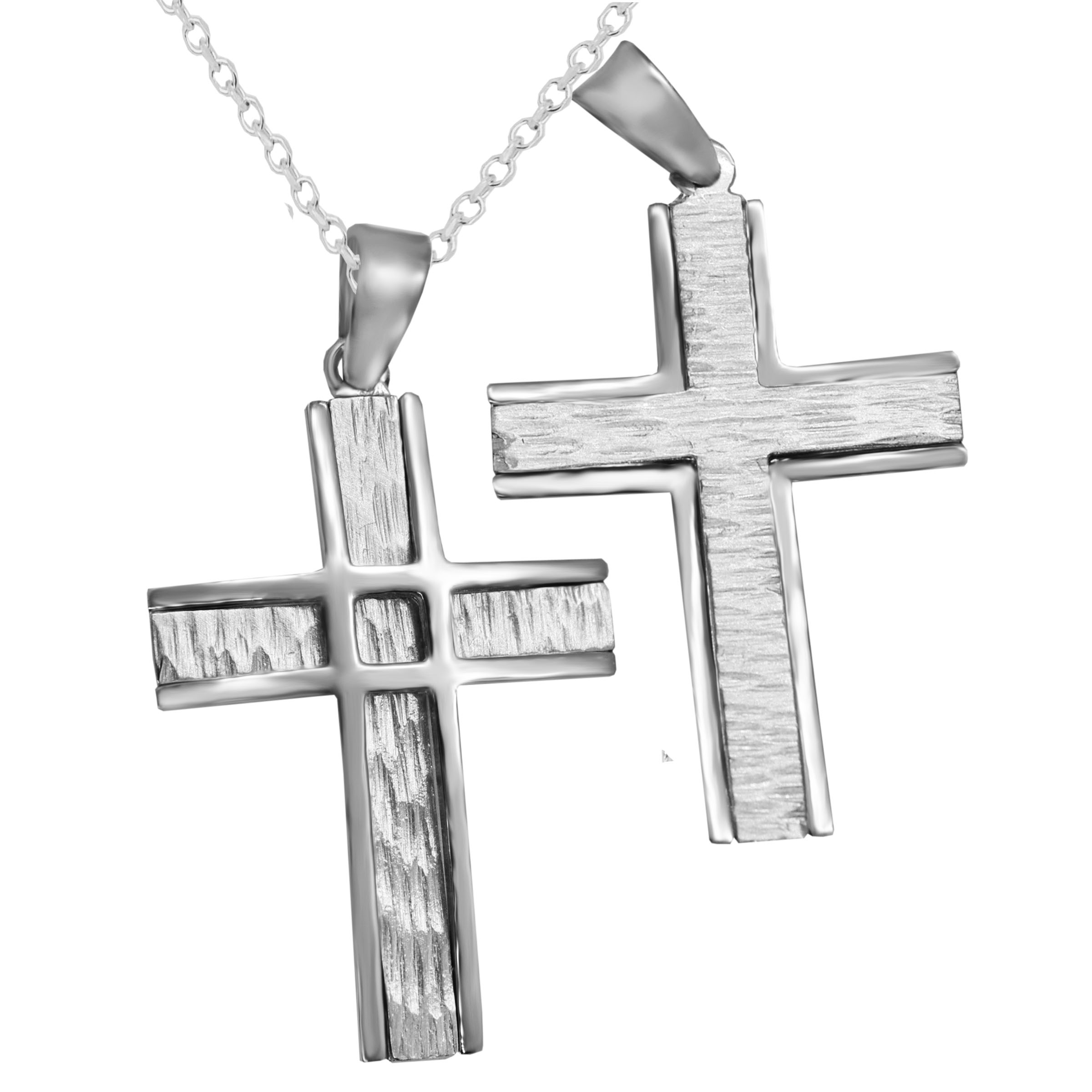 STPR45ζ -Λευκόχρυσος βαπτιστικός σταυρός 14Κ με αλυσίδα
